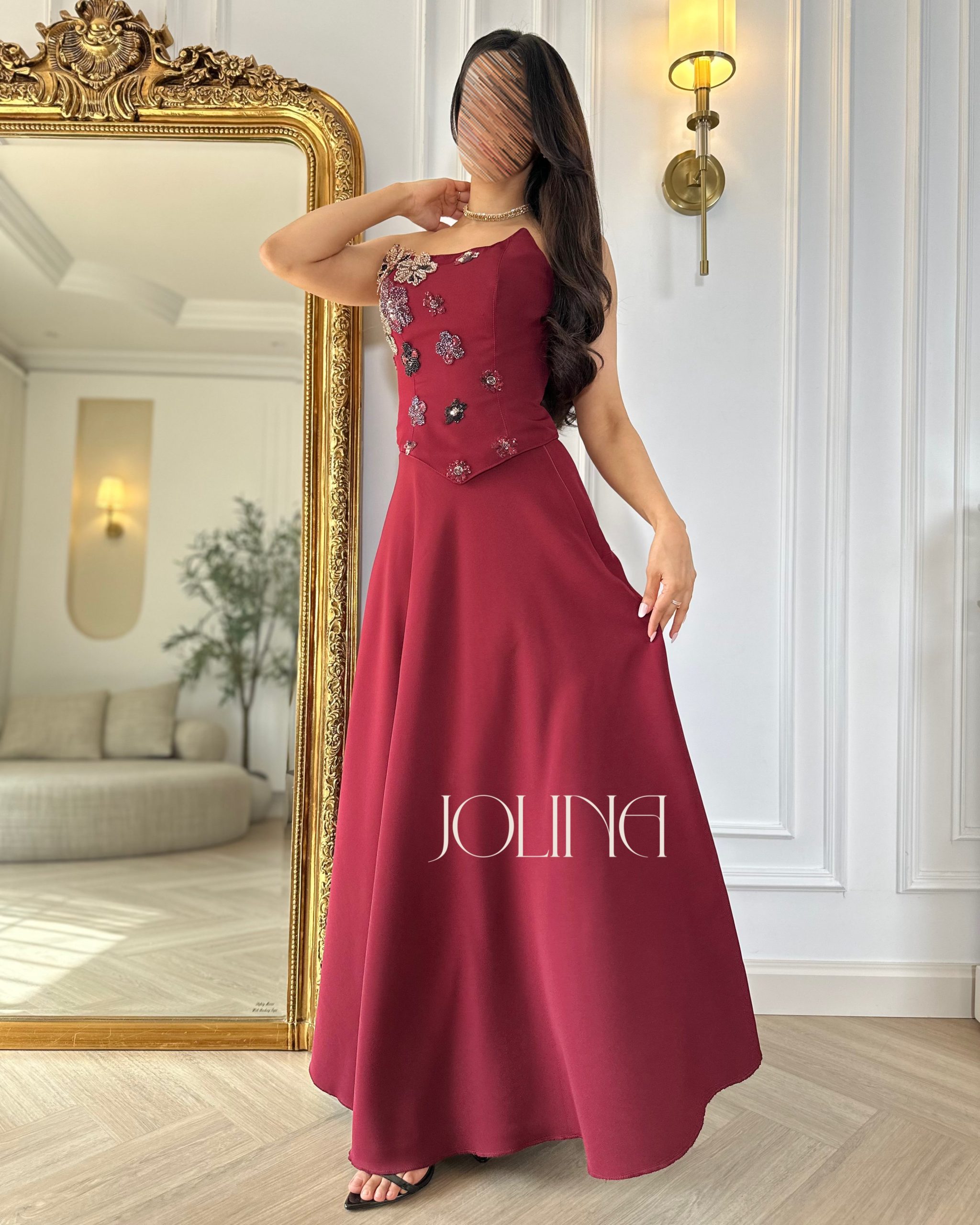 جولينا – طقم بيج أنيق بتصميم ناعم وتنورة بليسيه