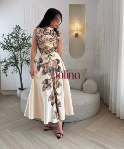 جولينا – طقم اوف وايت باكمام طويلة وكرستال ناعم