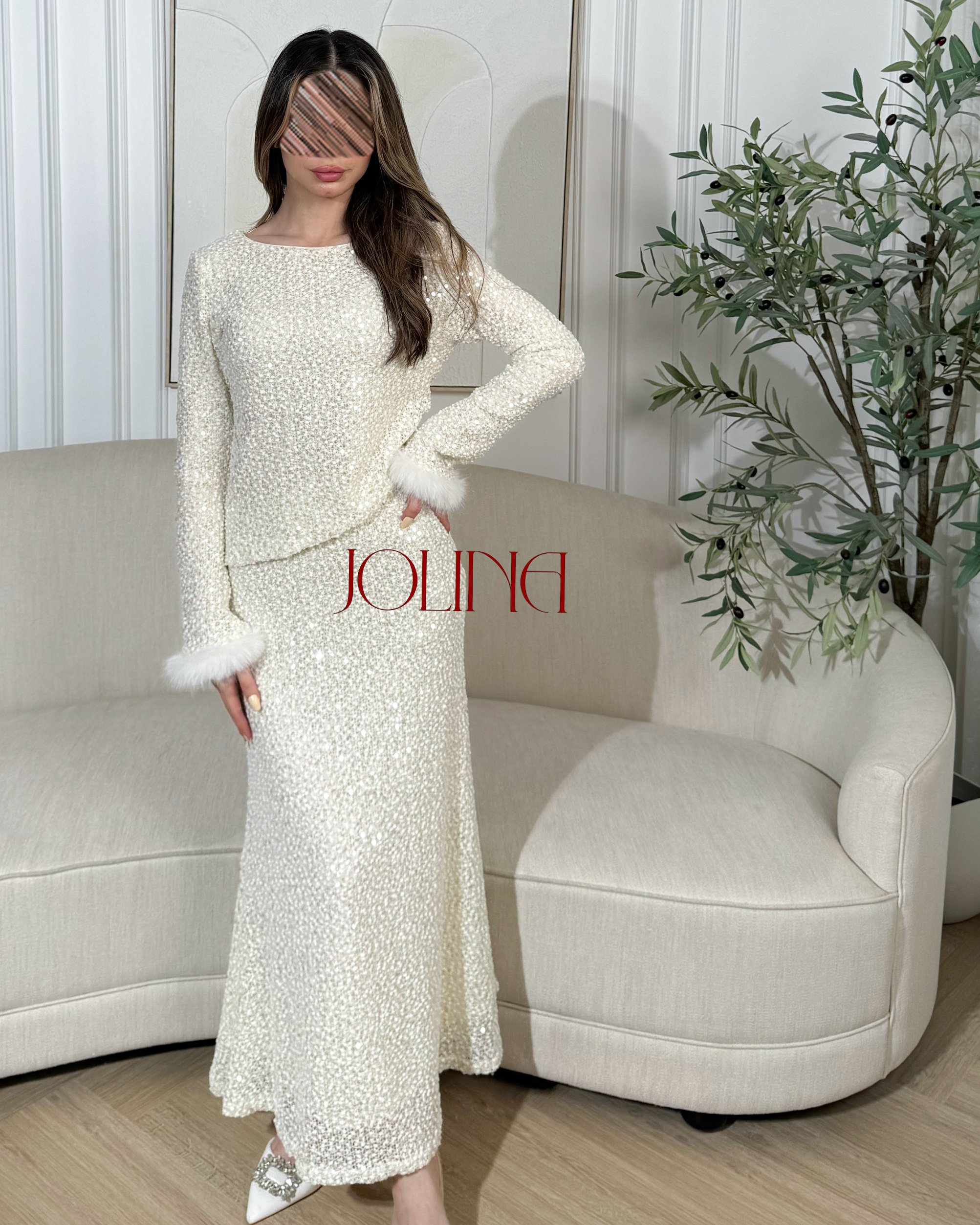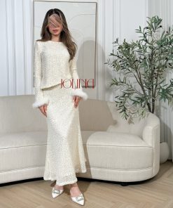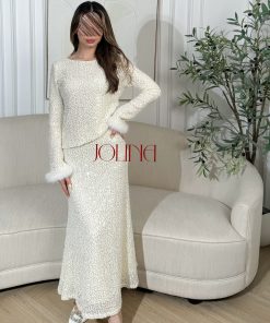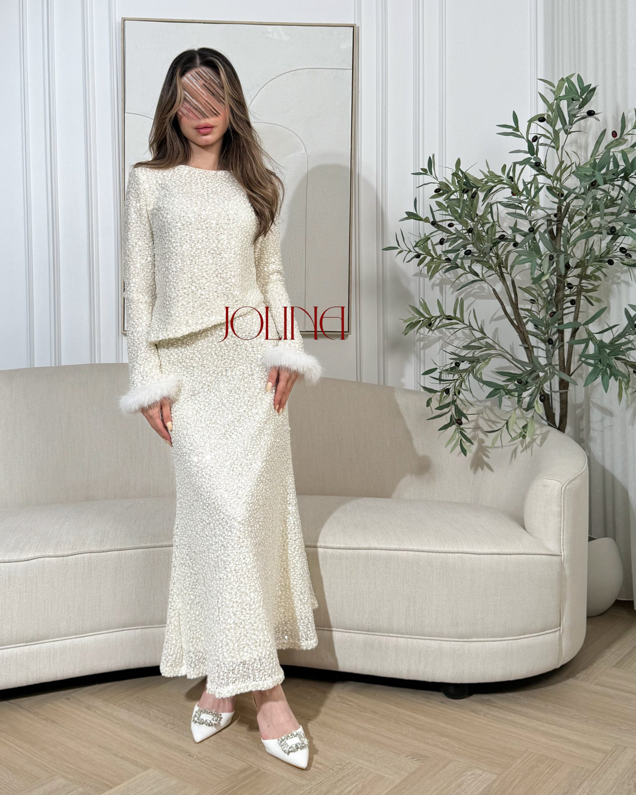 جولينا – طقم اوف وايت باكمام طويلة وكرستال ناعم
