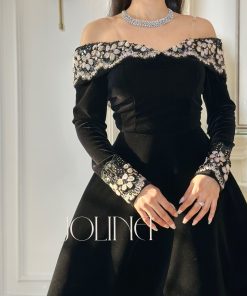 جولينا – فستان أبيض ناعم بأكتاف منسدلة وتطريزات لؤلؤية