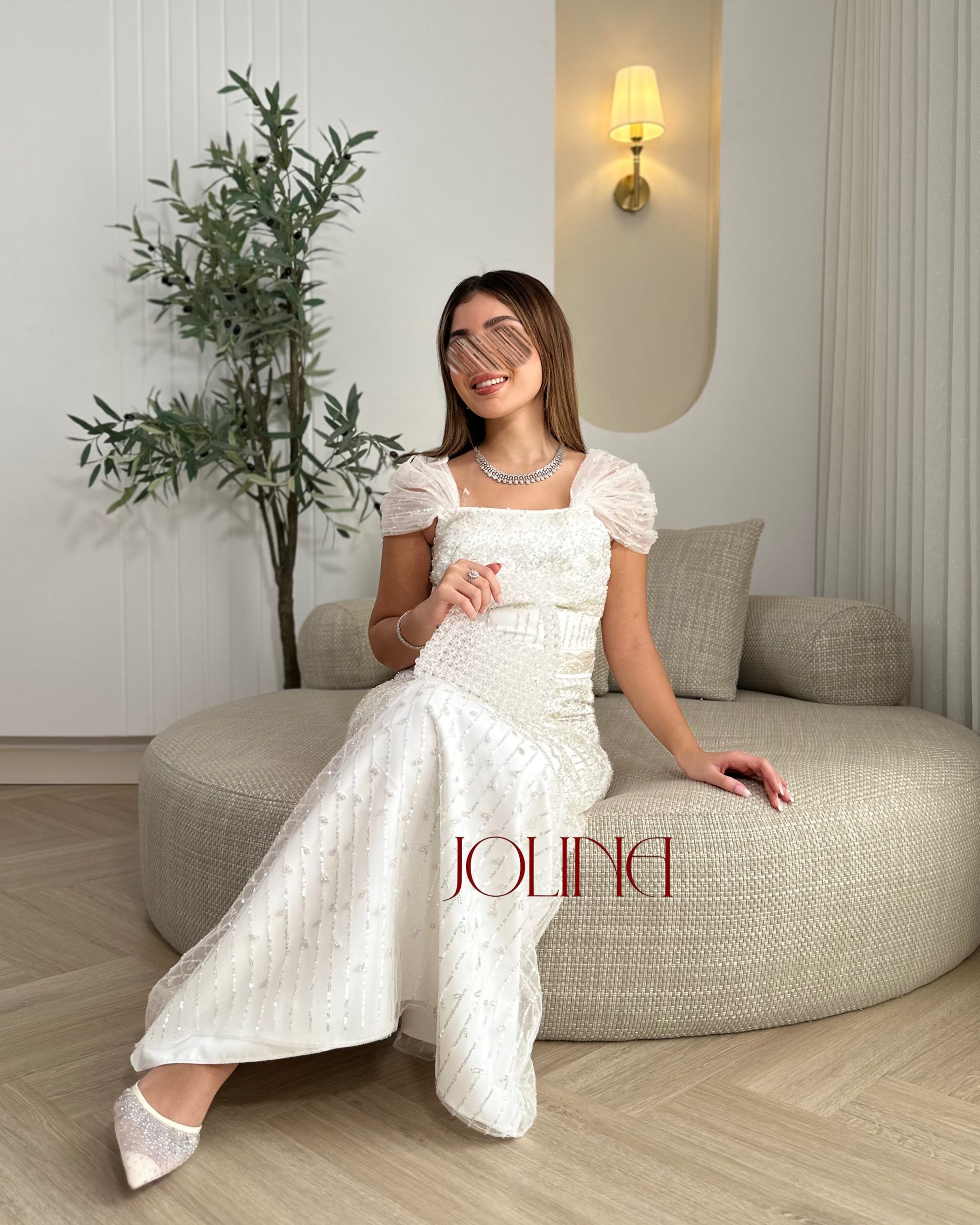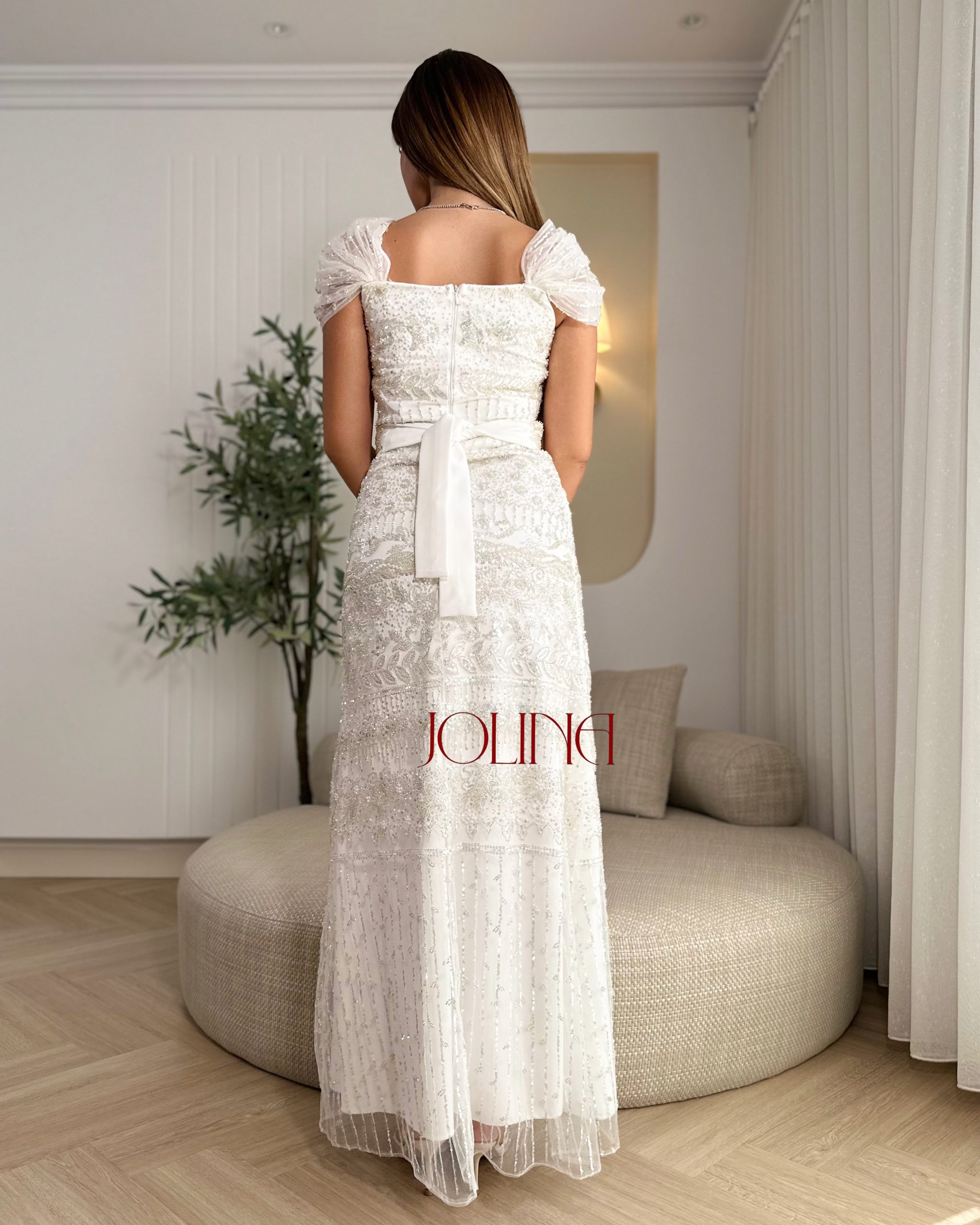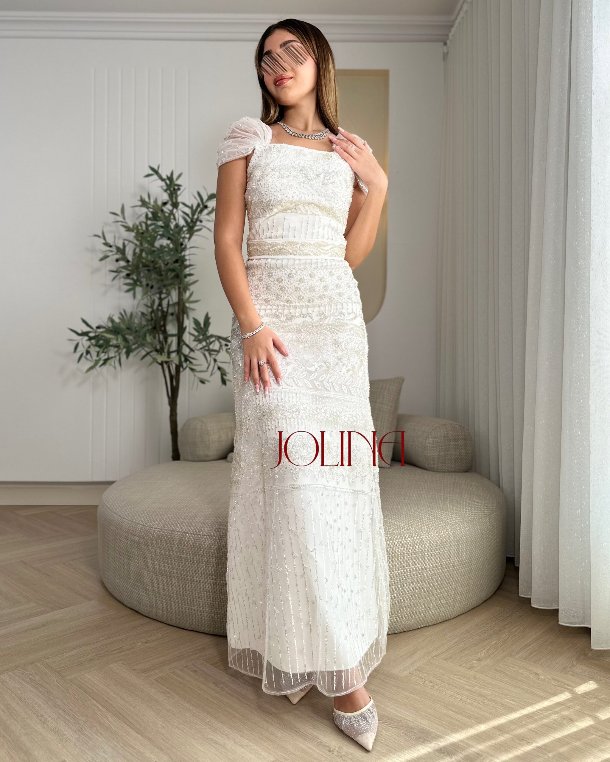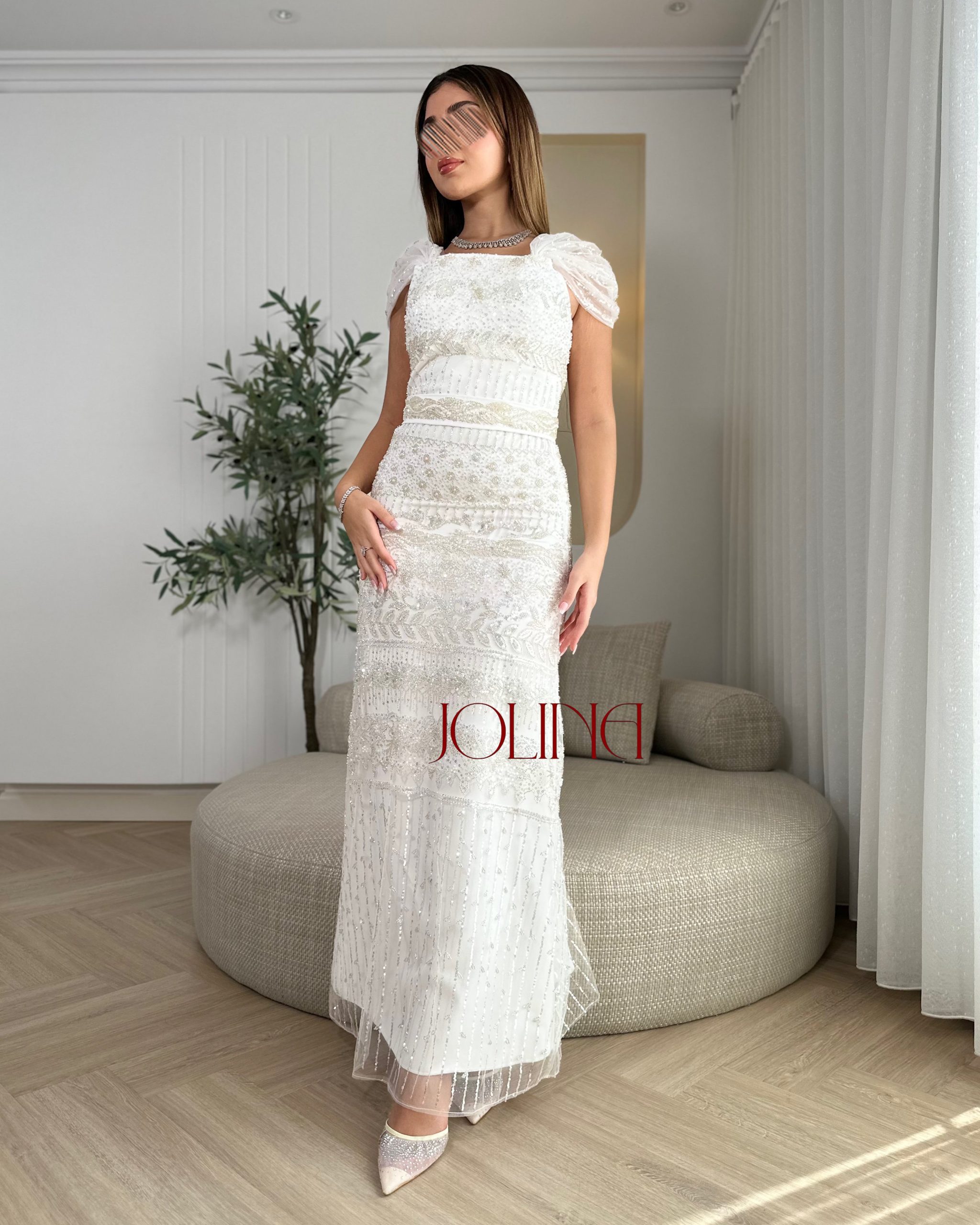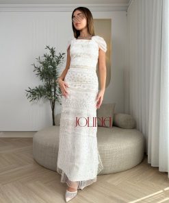 جولينا – فستان سهرة أبيض مطرّز بالكامل