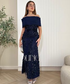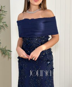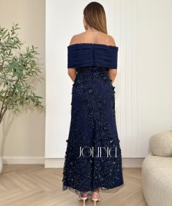 جولينا – فستان سهرة كحلي مطرّز بتصميم أوف شولدر