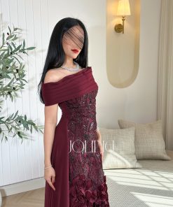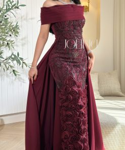 جولينا – فستان أبيض ناعم بأكتاف منسدلة وتطريزات لؤلؤية