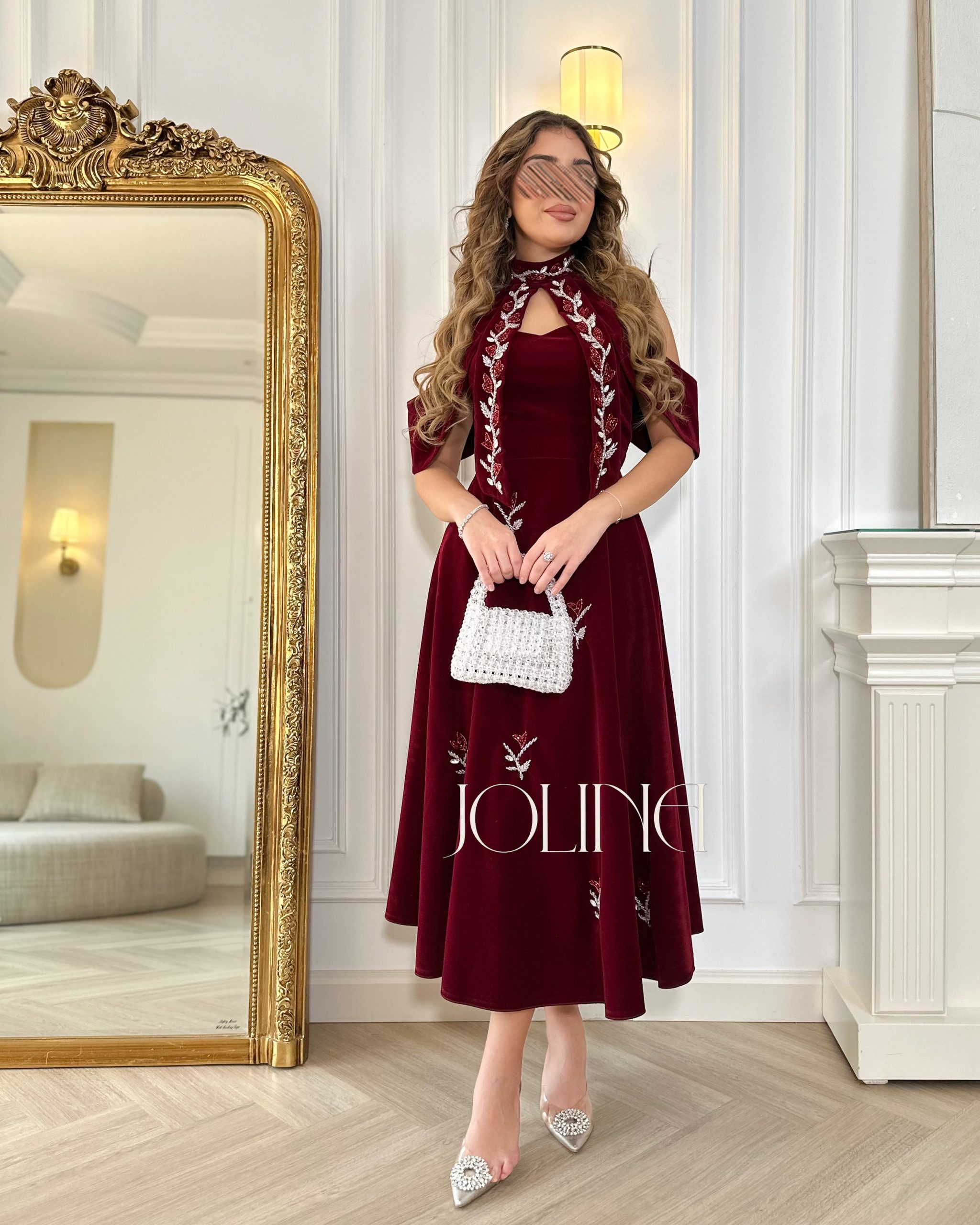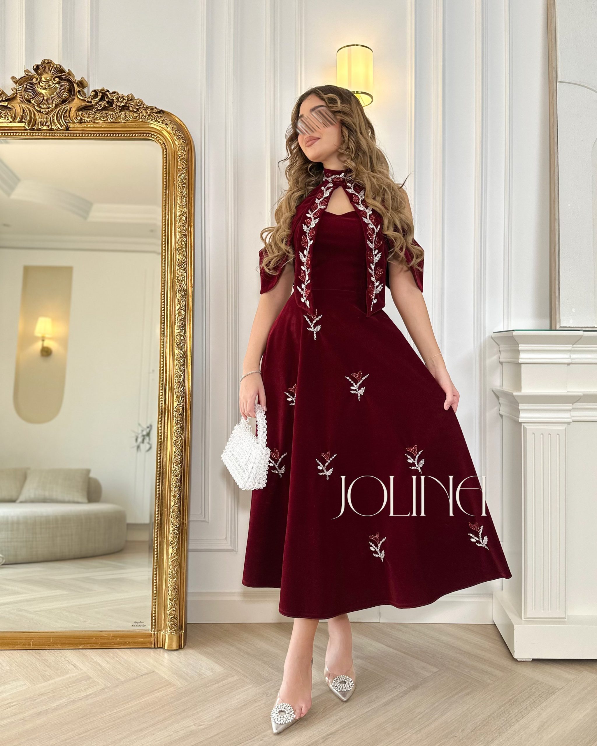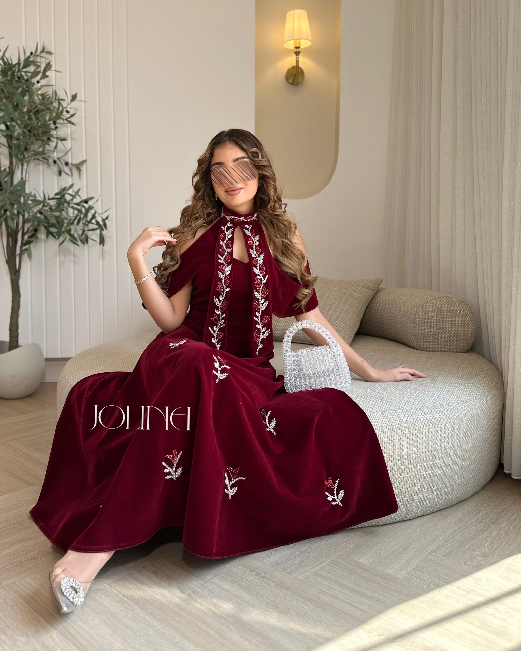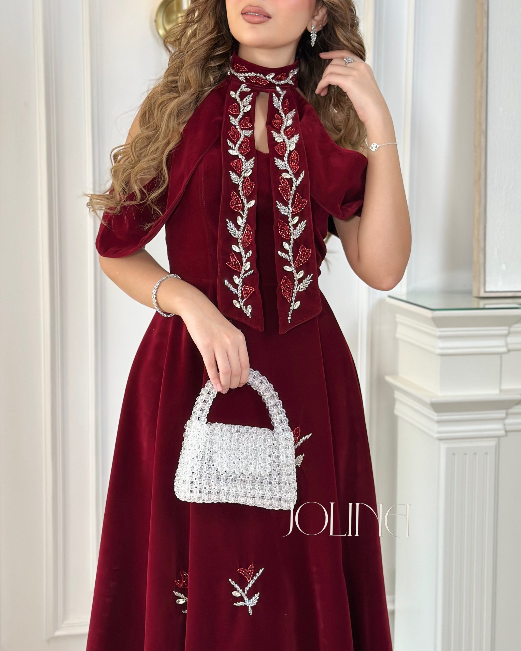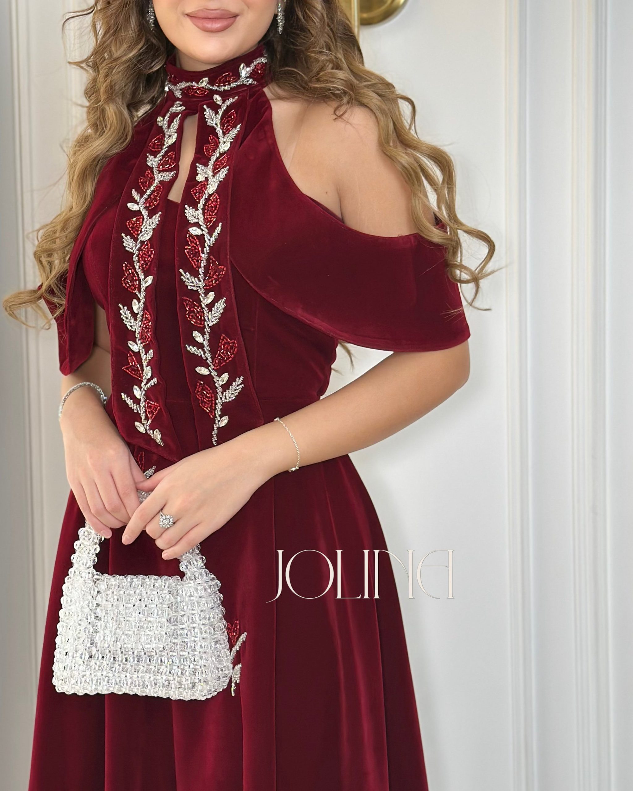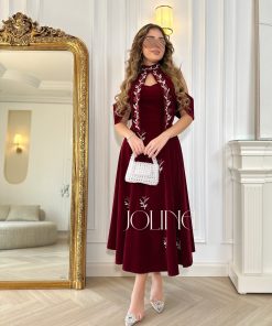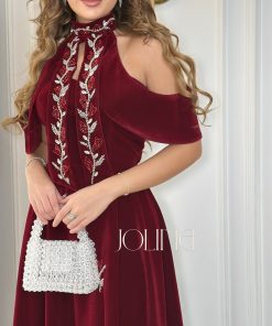 جولينا – فستان مخمل عنّابي مطرز