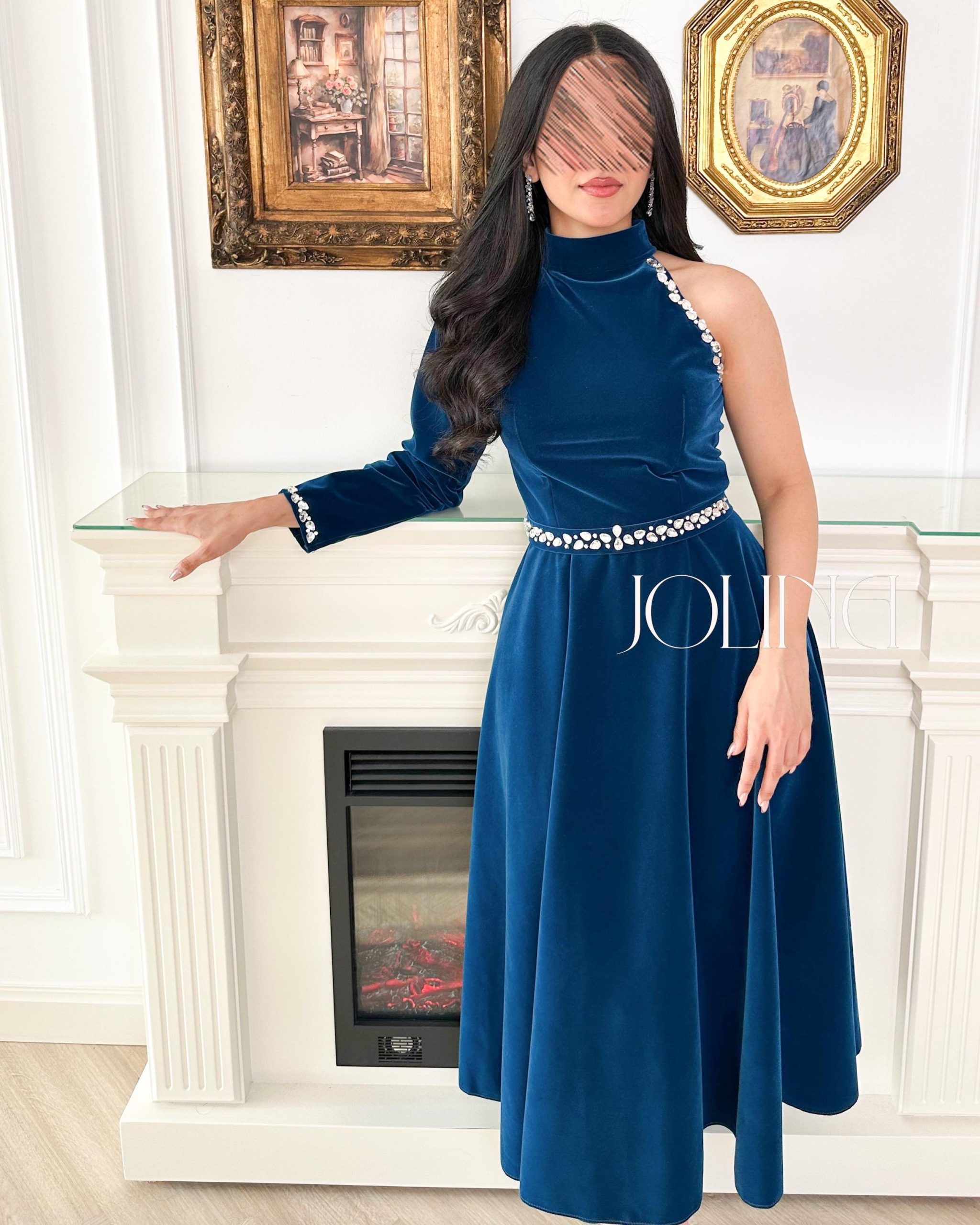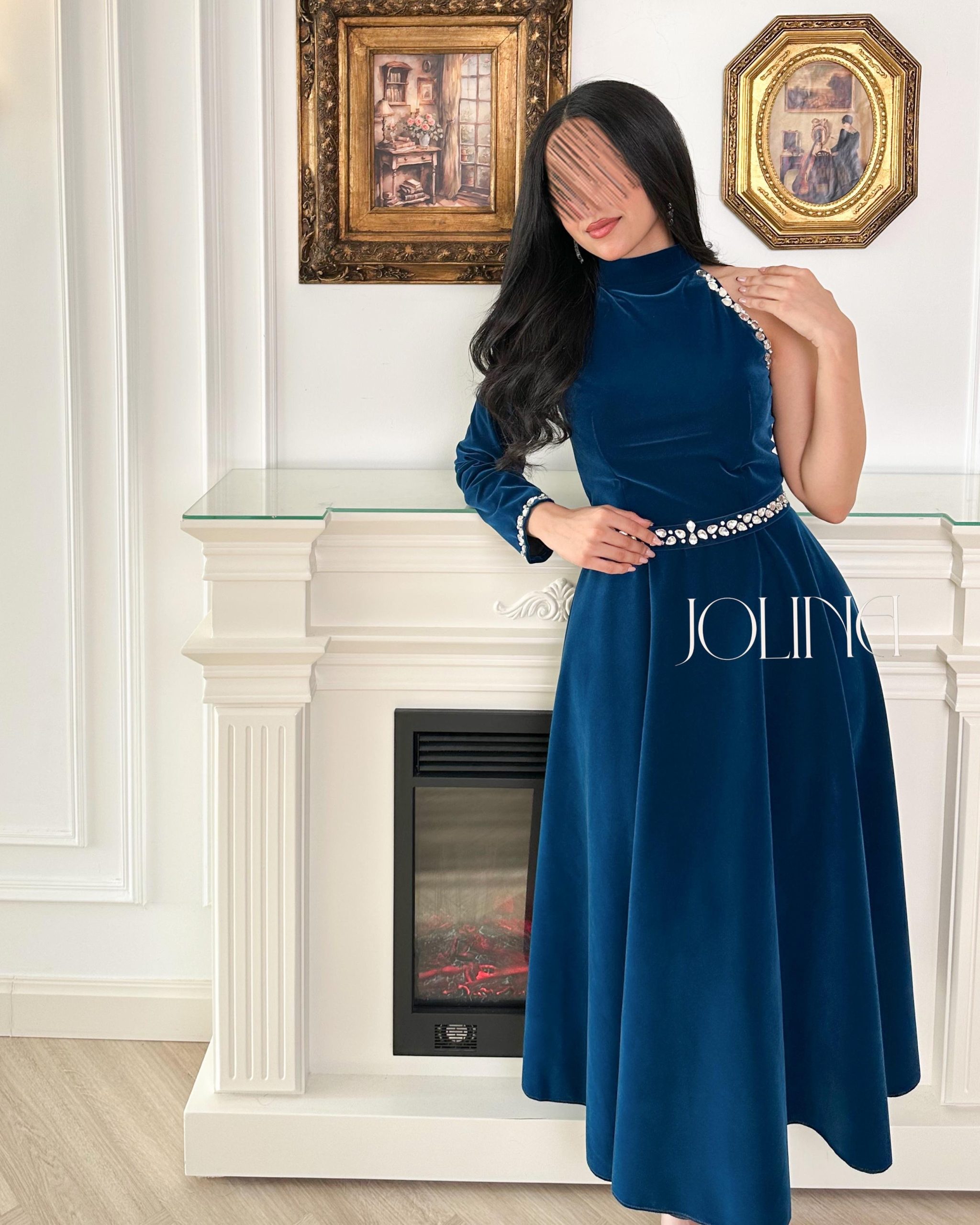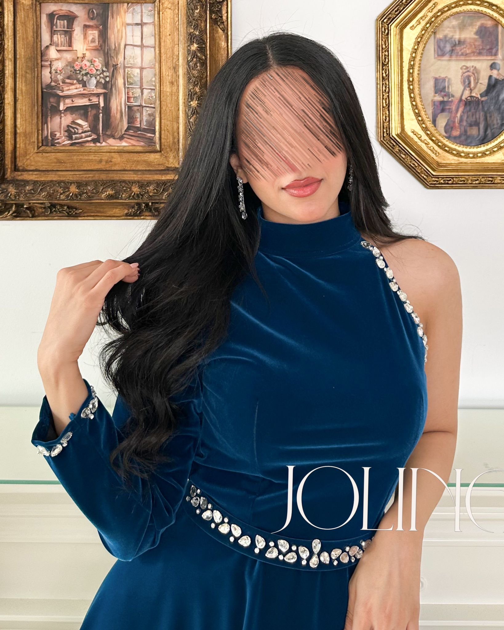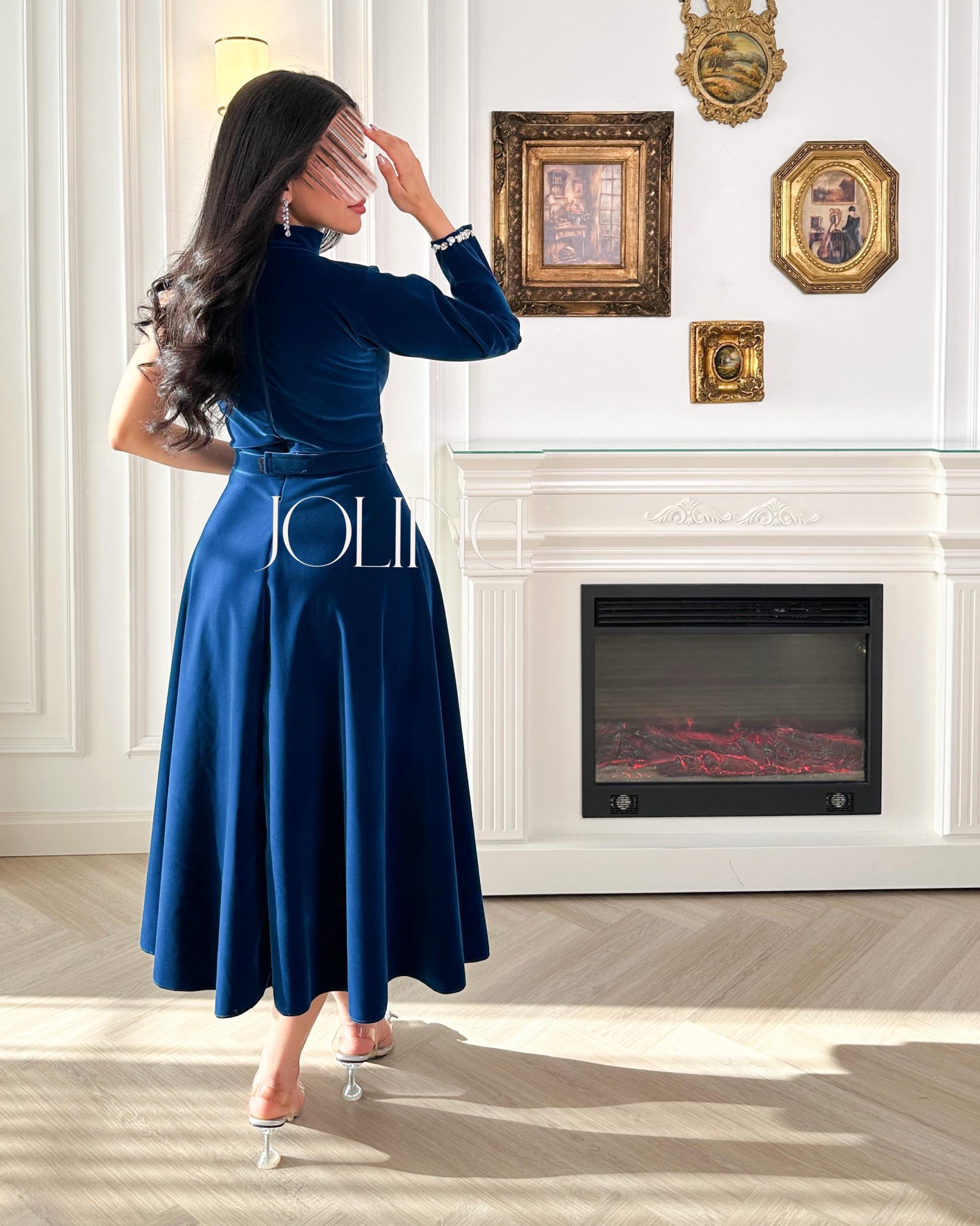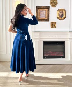 جولينا – فستان ميدي جوخ تركوازي بالفصوص
