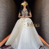 جولينا – فستان أبيض ناعم بأكتاف منسدلة وتطريزات لؤلؤية