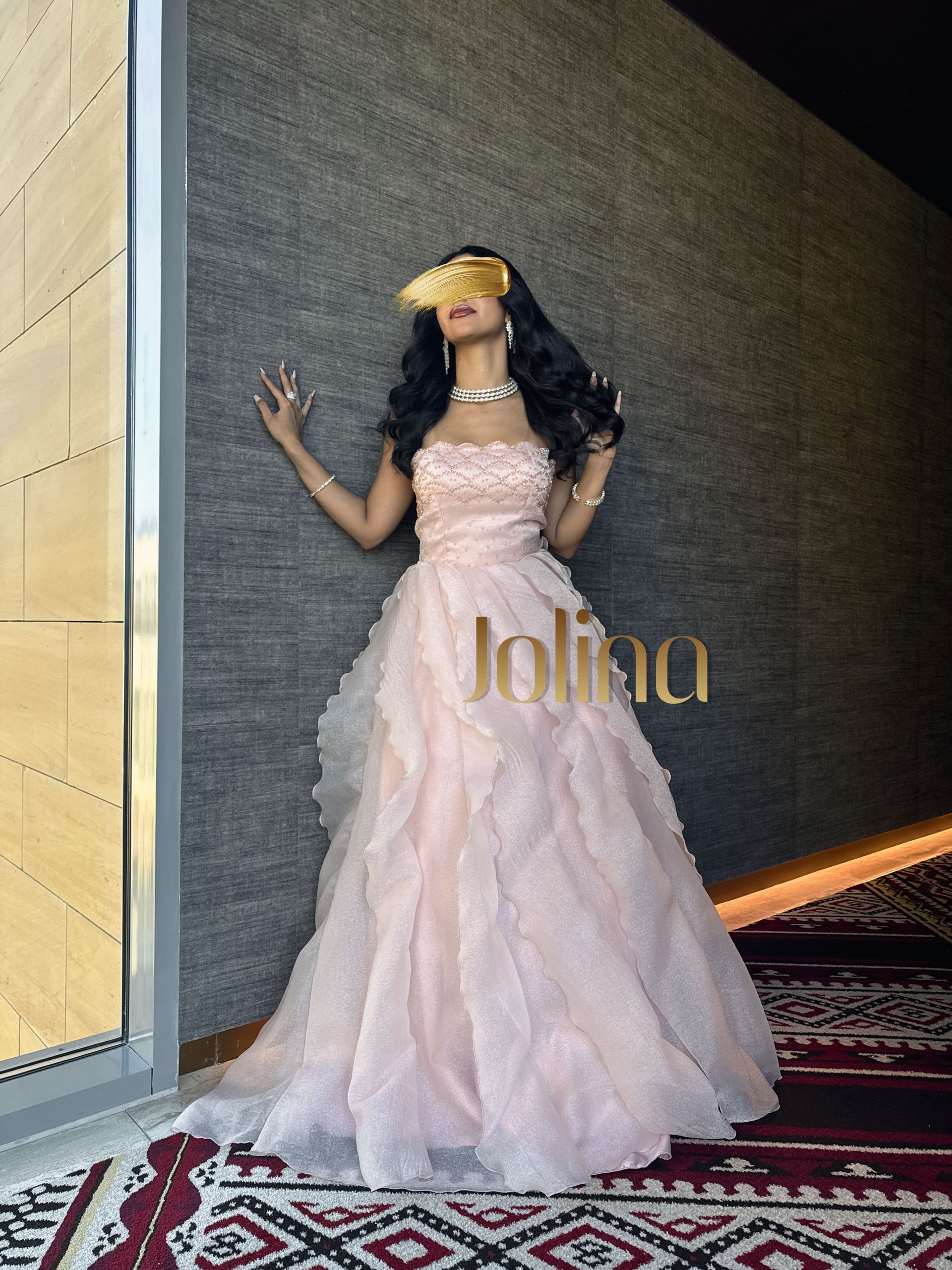 جولينا – طقم مطرّز بترتر لامع مع كاب شيفون أنيق