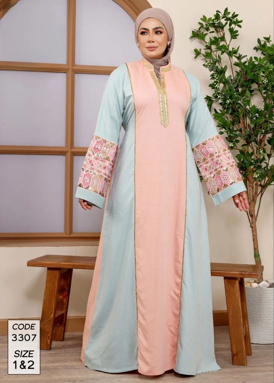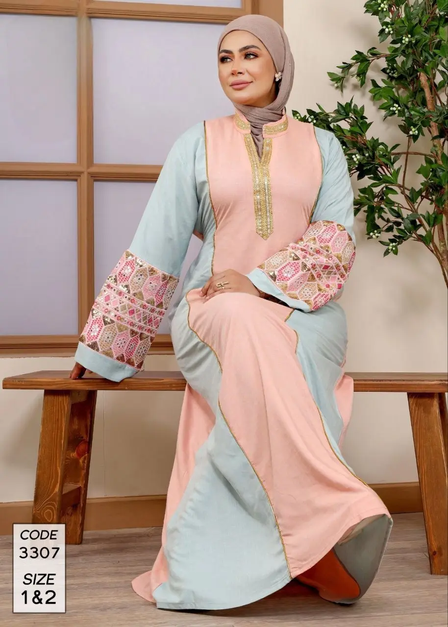 Be the first to review “دار الجلابية – عباية كتان بكلفة و تطريز ترتر علي الكم”