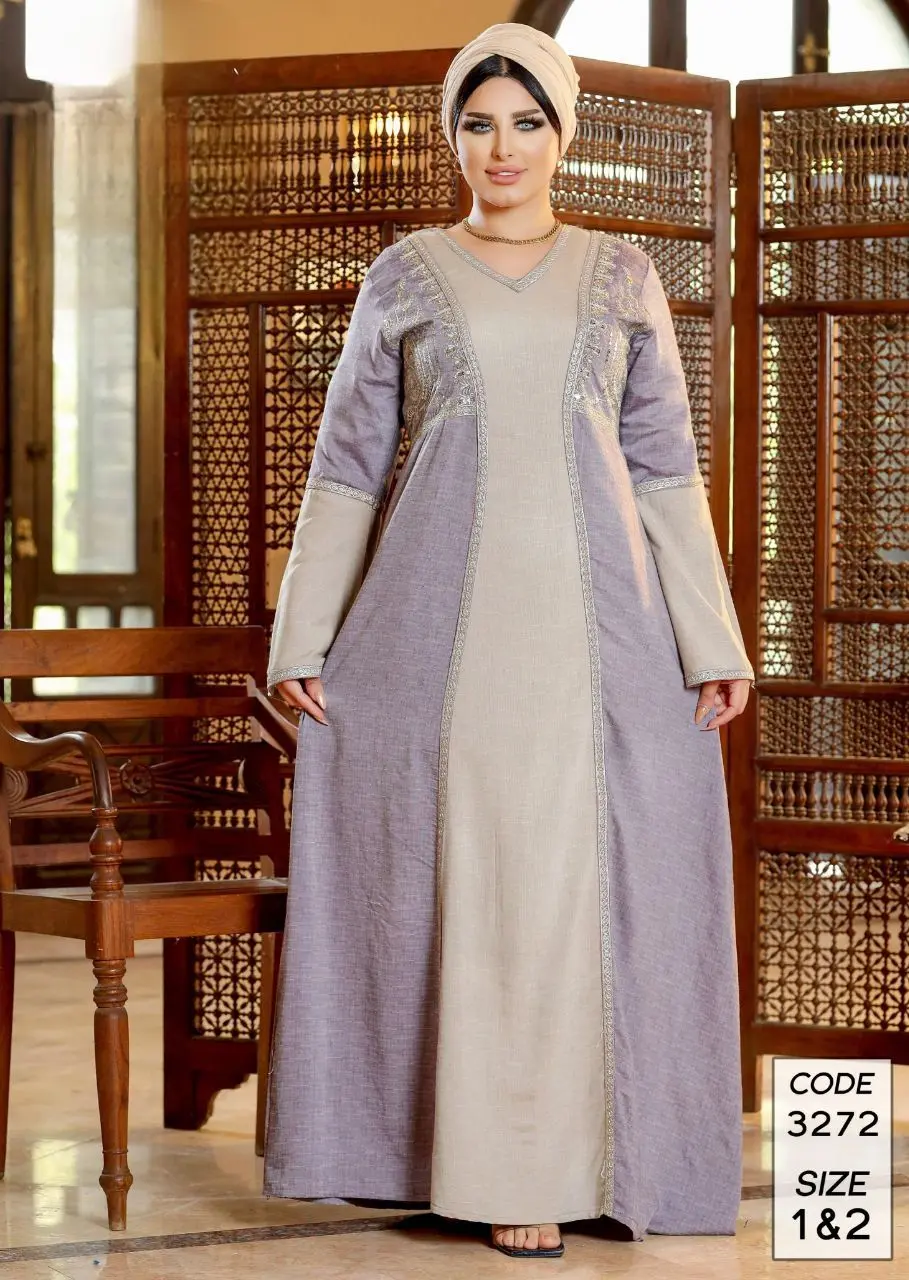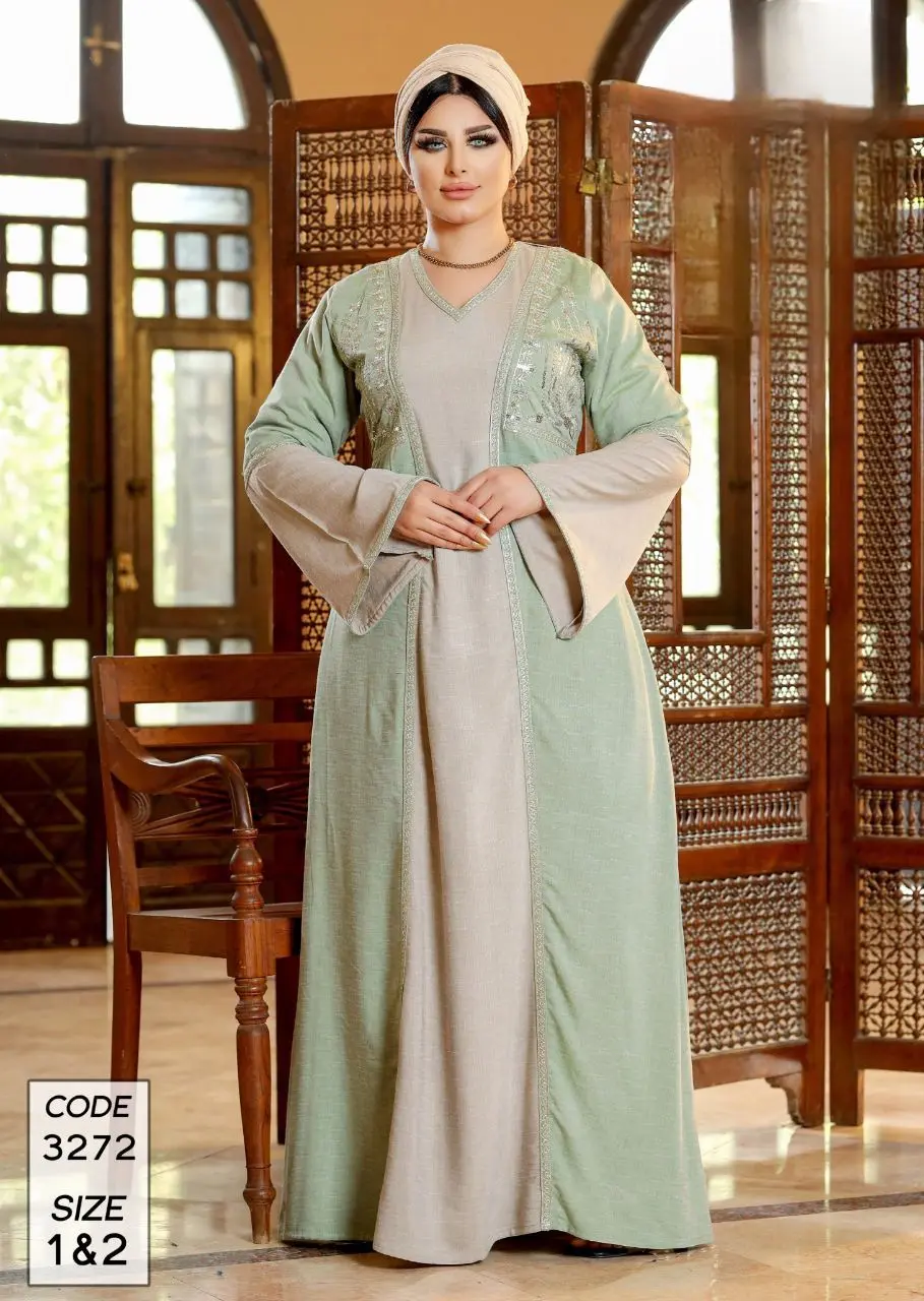 دار الجلابية – عباية كتان بكلفة و تطريز ترتر علي الكم