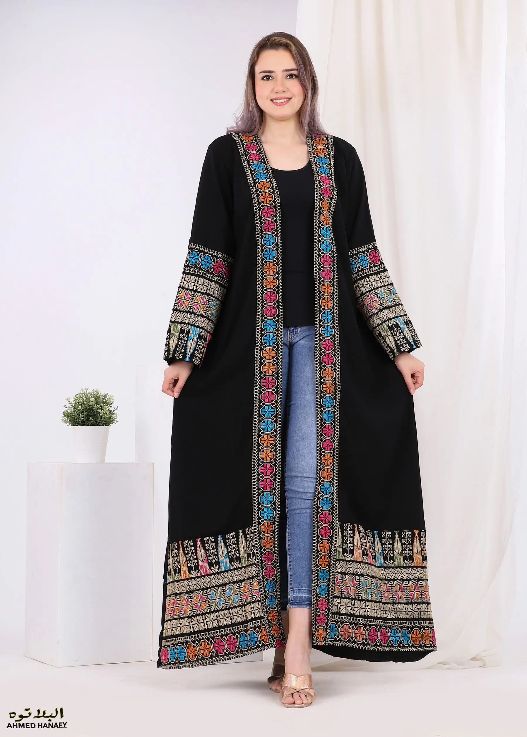 دار الجلابية – عباية كتان بجيبين و تطريز ايتامين سيناوي