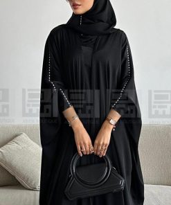 عبايات بيست – عباية عملية بتطريز على الكم باللون الاسود