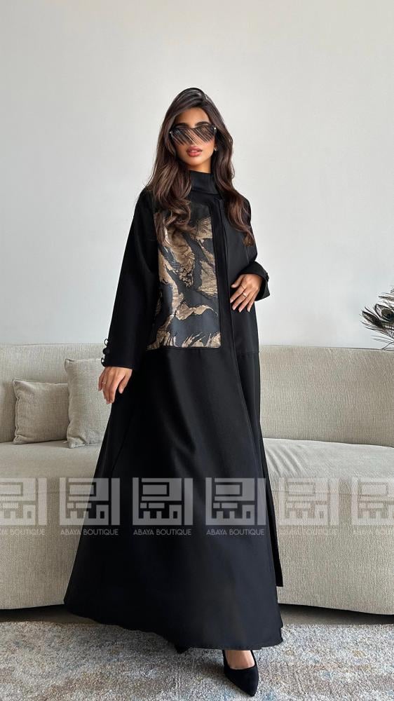 عبايات بيست – عباية نص كلوش أنيقة تدخيلة ذهبي-901