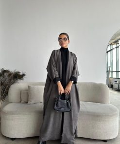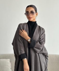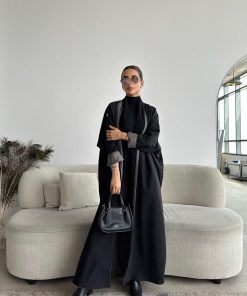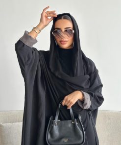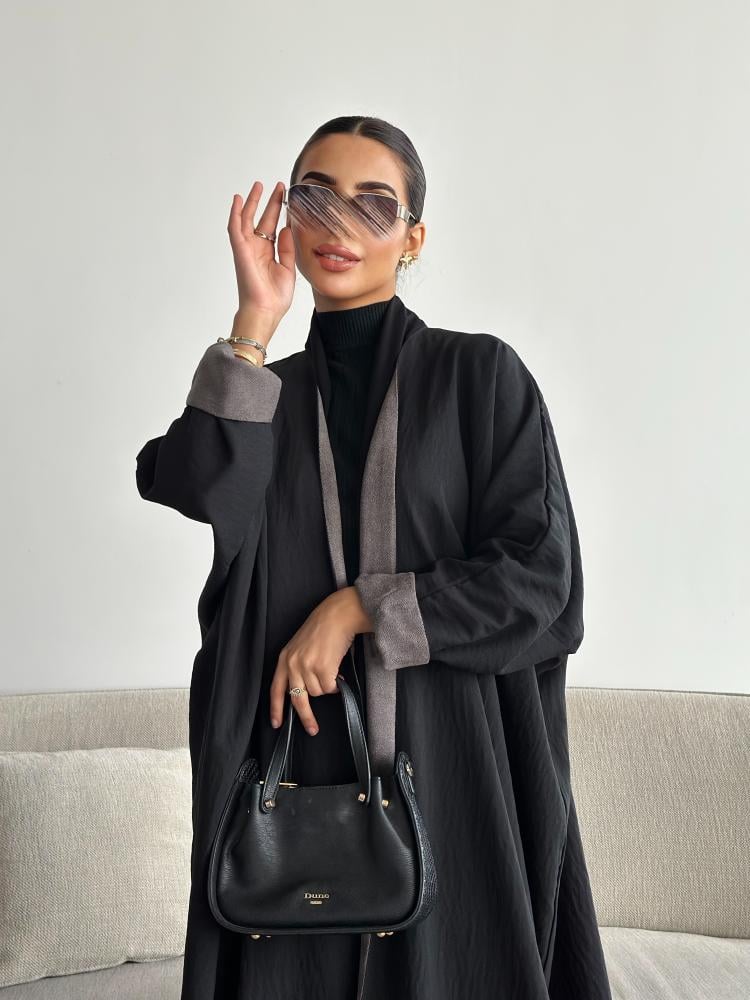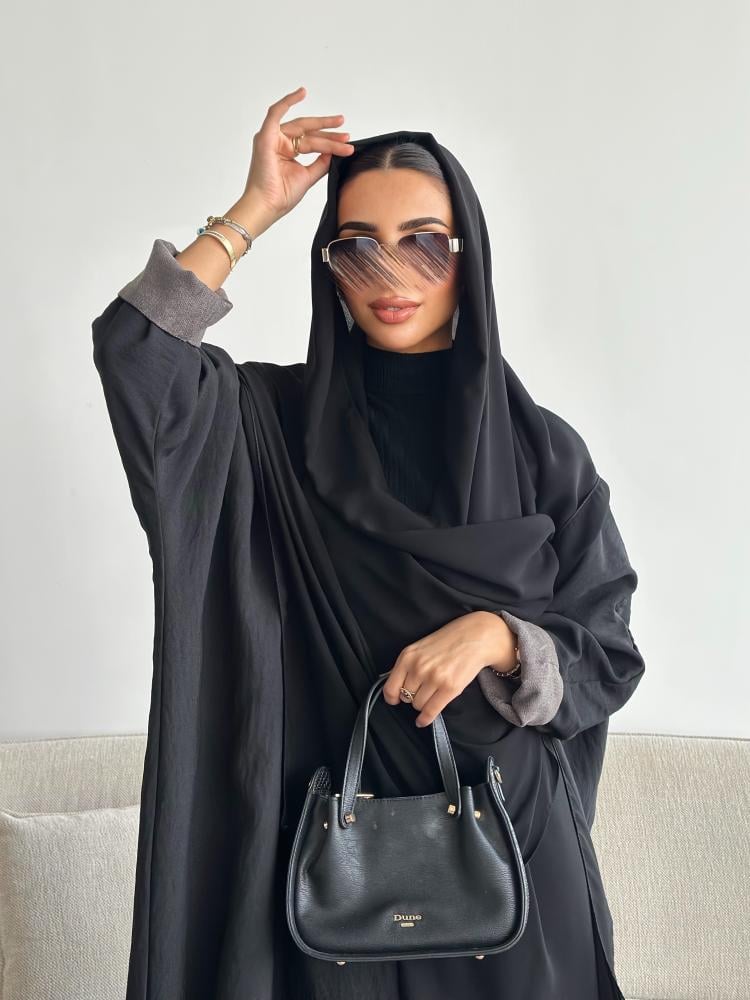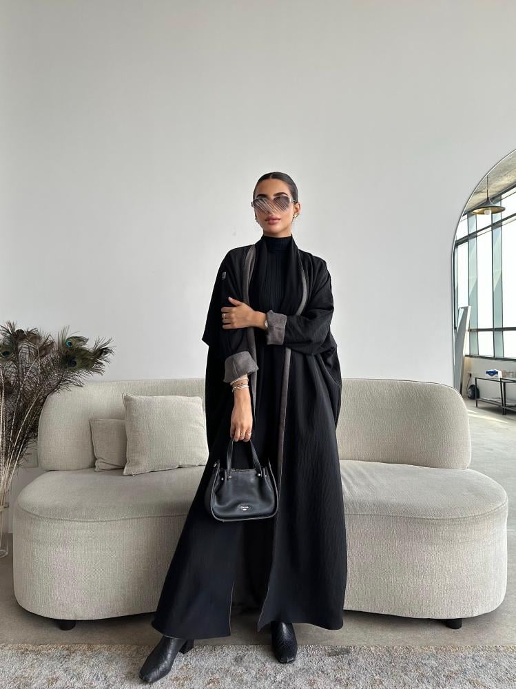 دار امتنان – بكج عباية الخريف سوداء بالكامل ربع كلوش بقماش ليمار 1493
