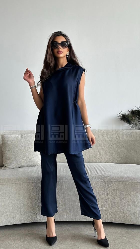 مكوّن الطقم من تيشيرت مزود بمطاط من الخصر مع بنطلون، حيث تم تصميمه من قماش حرير ناعم وخفيف، مما يضمن لك تجربة ارتداء مريحة طوال اليوم. القماش الحريري ليس فقط جميلًا، بل أيضًا يسمح بتهوية جيدة، مما يجعله مثاليًا في الأجواء الحارة.