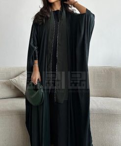 عباية حرير زيتية بالكريستال مع طرحة مزينة بالكريستال بقماش صيفي هي الخيار المثالي لكل سيدة تبحث عن إطلالة أنيقة وفاخرة. تتميز هذه العباية بقماش الحرير الزيتي الذي يتمتع بانسيابية ولمعان رائع، مما يضفي لمسة من الفخامة على مظهرك.