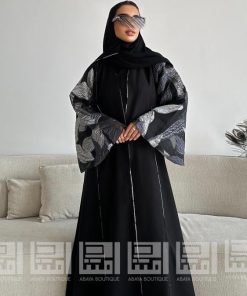 عباية سوداء باردة كلوش بأكمام من الجاكار الرمادي والكحلي هي الخيار المثالي لكل سيدة تبحث عن الأناقة والراحة في آن واحد. تتميز هذه العباية بقماش رغدة ناعم وخفيف، مما يجعلها مريحة للارتداء طوال اليوم. تصميمها الأنيق والفريد يجعلك تبرزين في أي مناسبة.