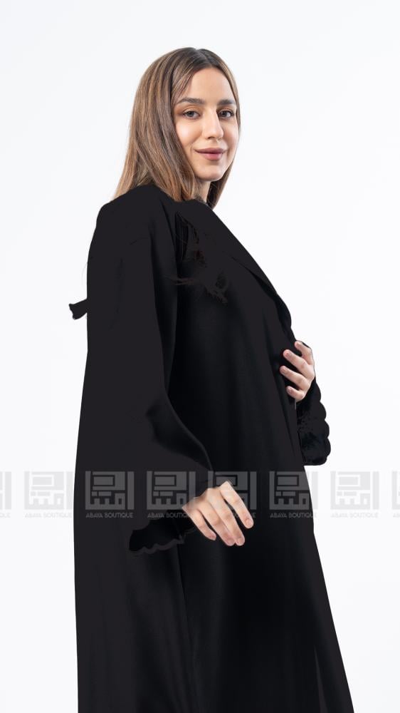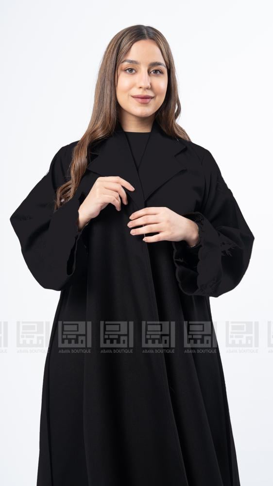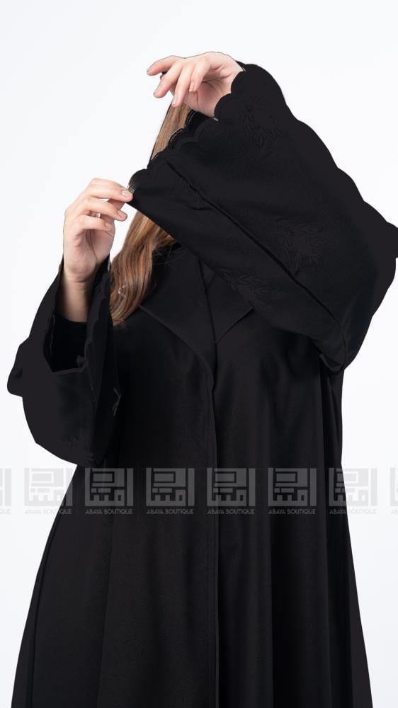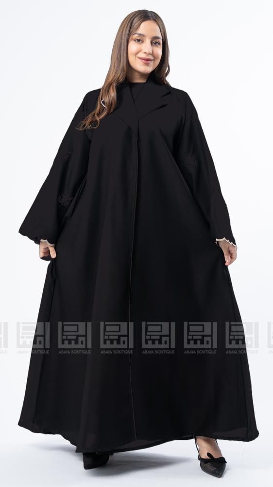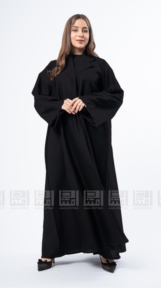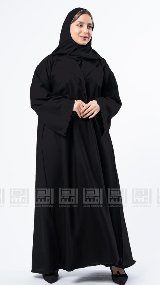 عبايات بيست – عباية عملية بتطريز على الكم باللون الاسود