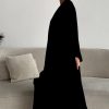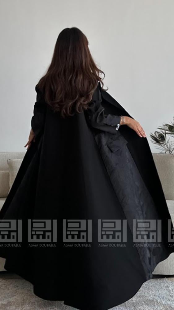 اكتشفي الأناقة مع **عباية سوداء صيفية ربع كلوش** بتداخل قماش جاكار المنقوش بالورد. تتميز هذه العباية بتصميمها الفريد الذي يجمع بين الفخامة والبساطة، حيث يظهر اللون الأسود العميق بشكل مثير يجذب الأنظار.