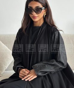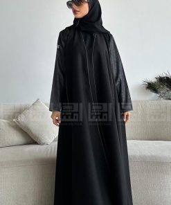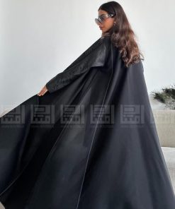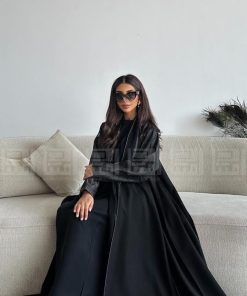 عباية سوداء نصف كلوش بأكمام مميزة هي الاختيار المثالي لكل سيدة تبحث عن الأناقة والتميز. مصنوعة من قماش رغدة الفاخر، تتميز هذه العباية بتصميمها العصري الذي يجمع بين الفخامة والراحة.
