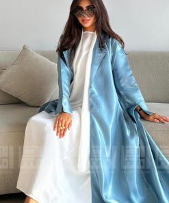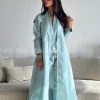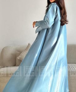 عباية صيفية ميكادو لامع بأكمام جرس وقصة A Line هي الخيار المثالي لكل سيدة تبحث عن الأناقة والراحة في فصل الصيف. تتميز هذه العباية بلون أزرق رائع، يضفي لمسة من الحيوية والانتعاش على إطلالتك. قماش الميكادو اللامع الذي صنعت منه العباية يمنحها مظهراً فاخراً، كما أنه خفيف الوزن، مما يجعلها مثالية للاستخدام اليومي.