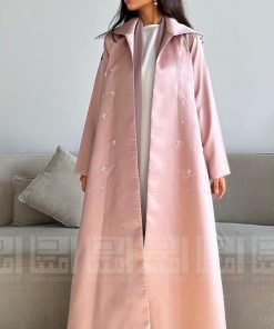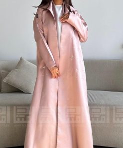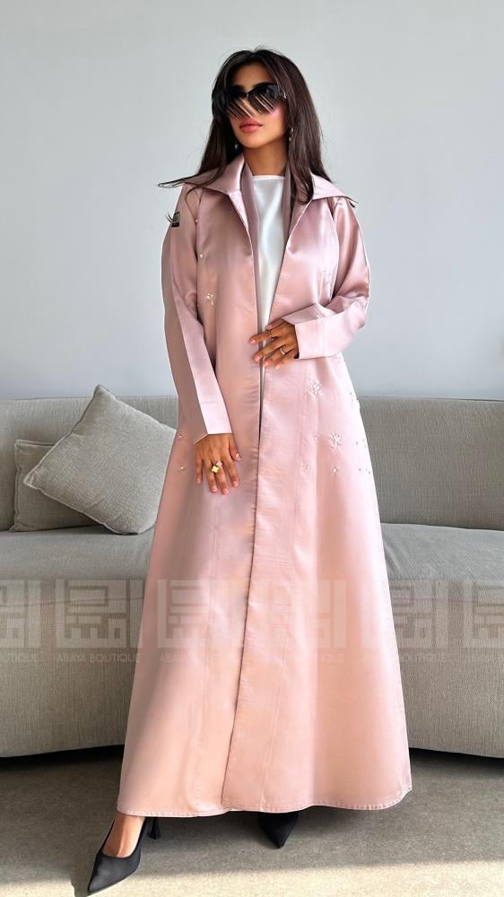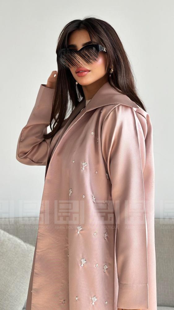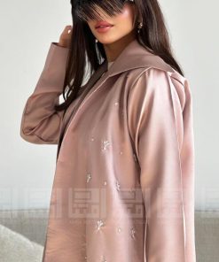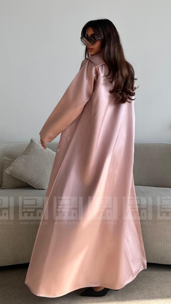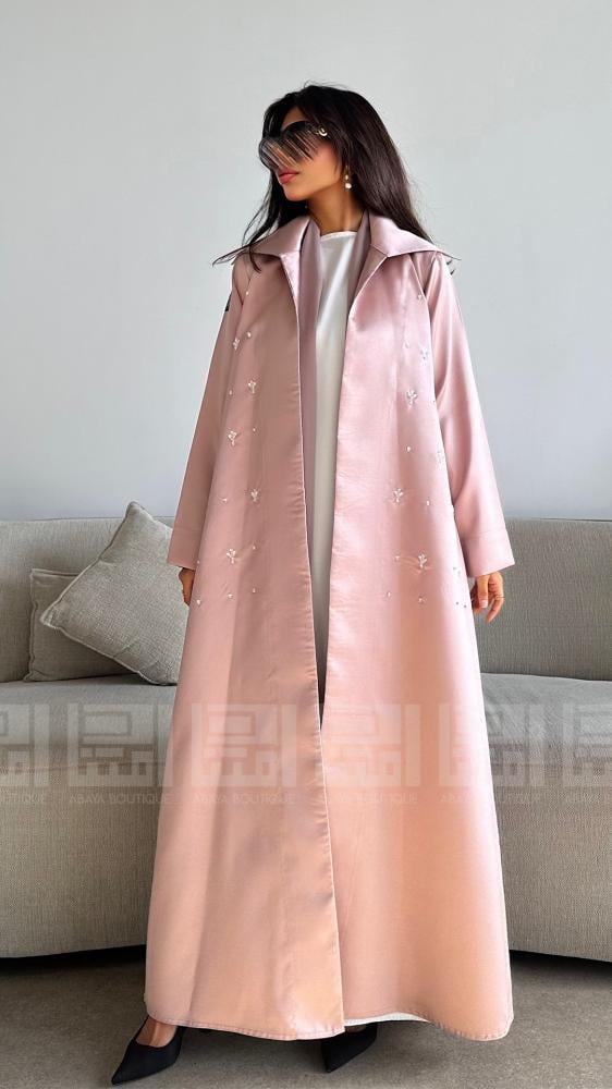 تُعتبر عباية صيفية أنيقة بتطريز خرزي فضي الخيار المثالي لإطلالة فاخرة وجذابة. تتميز هذه العباية بقماش تفتة الفاخر، الذي يُضفي لمسة من الأناقة والراحة في كل مناسبة.