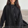 عباية صيفية سوداء بتطريز أنيق من الزهور على الأكمام