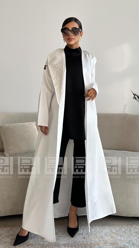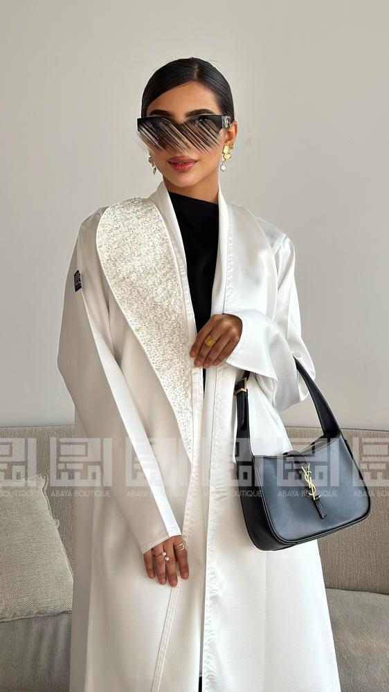 عباية صيفية كريستالية بيضاء من قماش ميكادو الفاخر