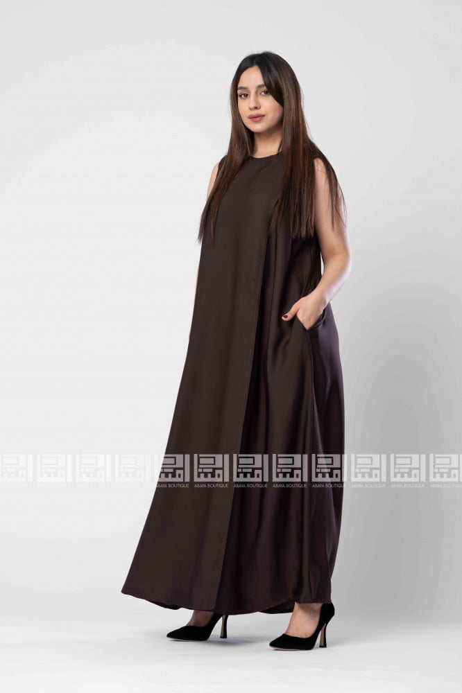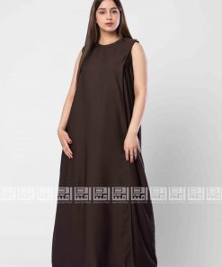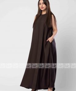 فستان تحت العباية سادة بتصميم مبتكر ، فستان بارد وخفيف بجيبوب جانبية