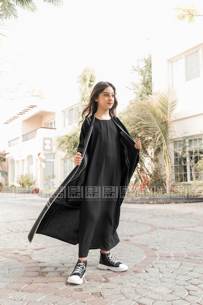 عبايات بيست – عباية عملية بتطريز على الكم باللون الاسود