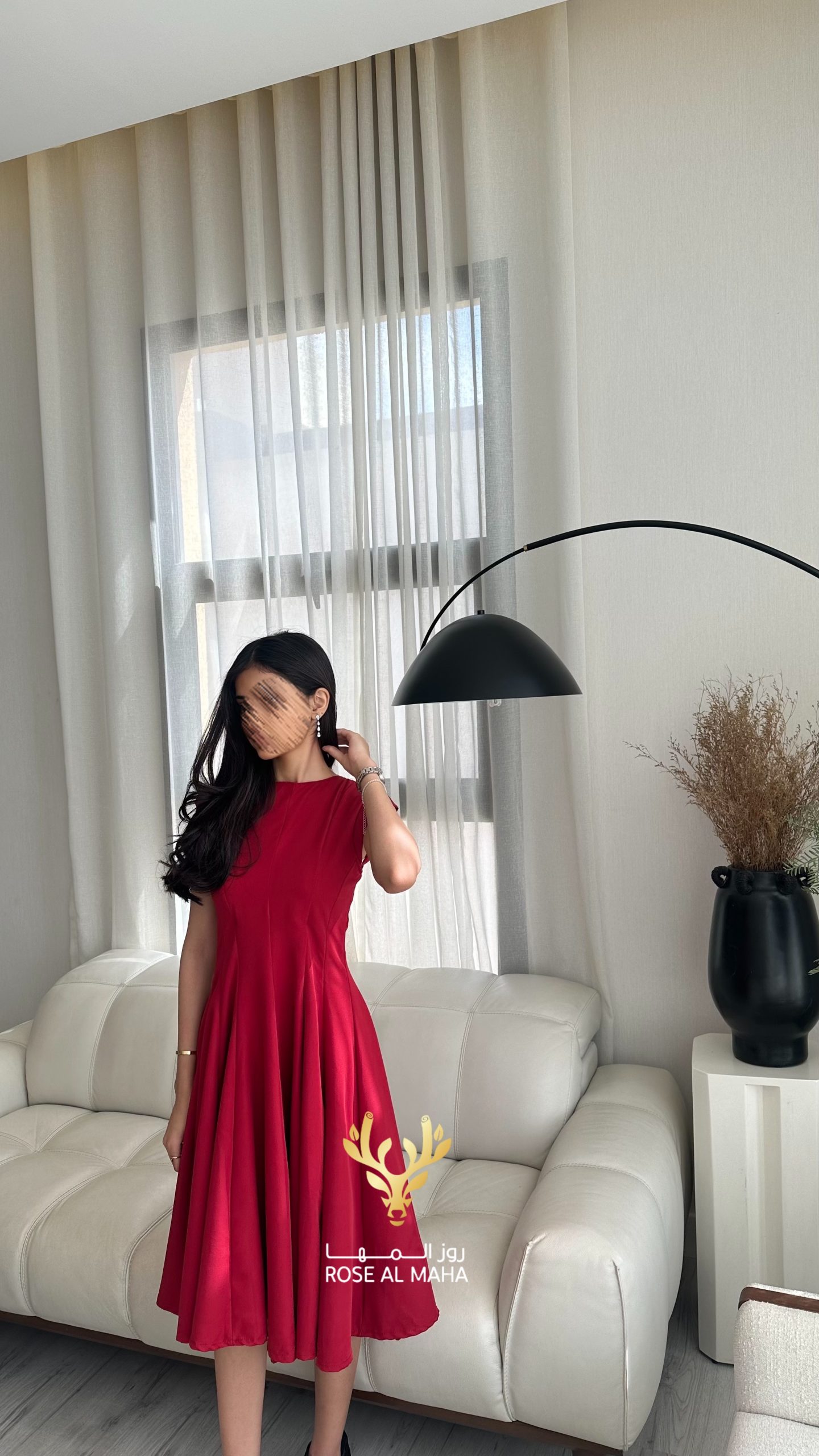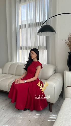 روز المها – فستان احمر ميد ناعم
