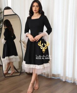 Be the first to review “روز المها – فستان اسود بأطراف تُـل ودانتيل” Cancel reply