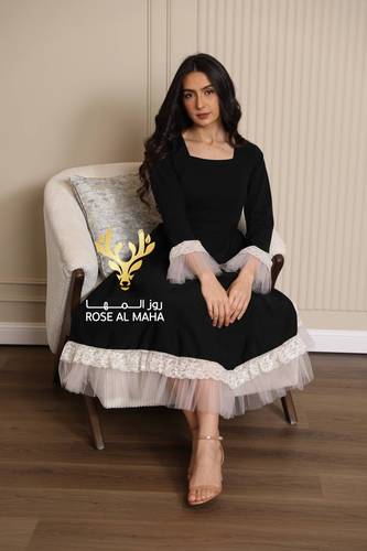 Be the first to review “روز المها – فستان اسود بأطراف تُـل ودانتيل” Cancel reply