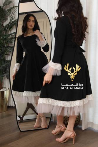 روز المها – فستان اسود بأطراف تُـل ودانتيل