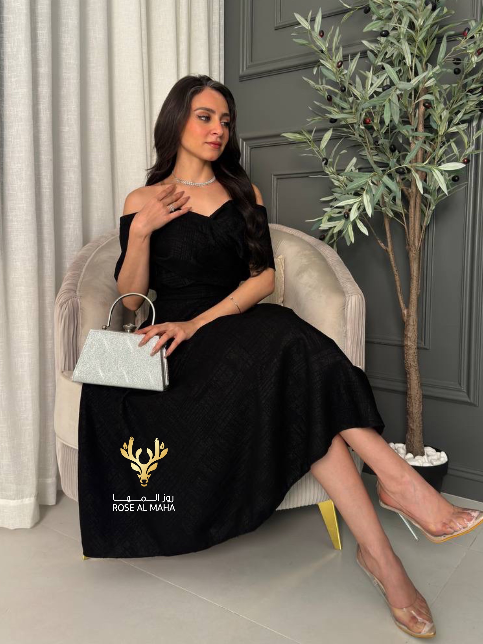 روز المها – فستان اسود سهرة ميد اوف شولدر