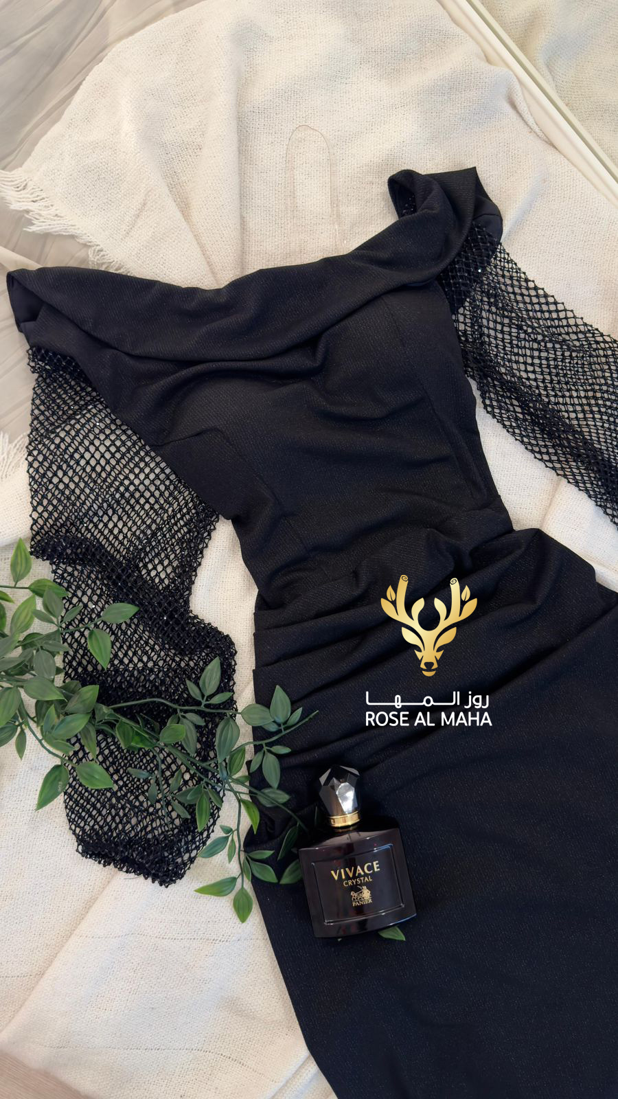 روز المها – فستان اسود مخصر كم طويل