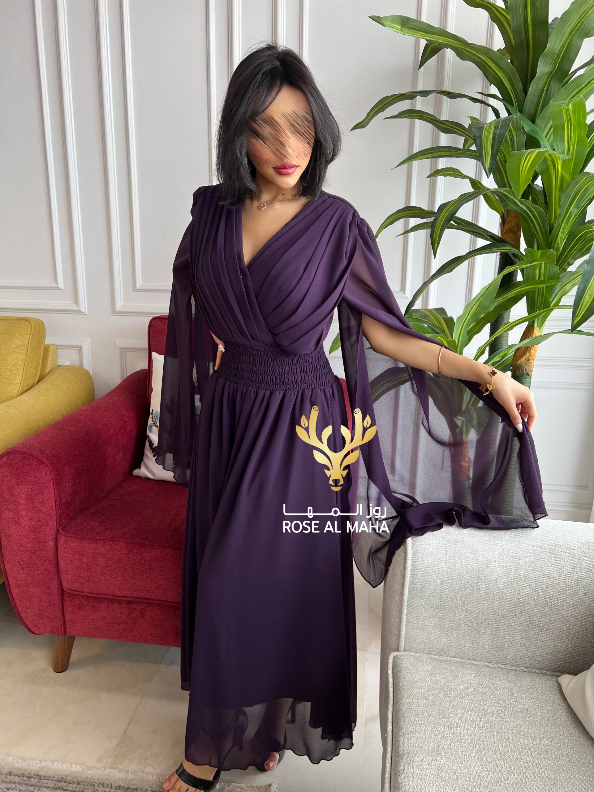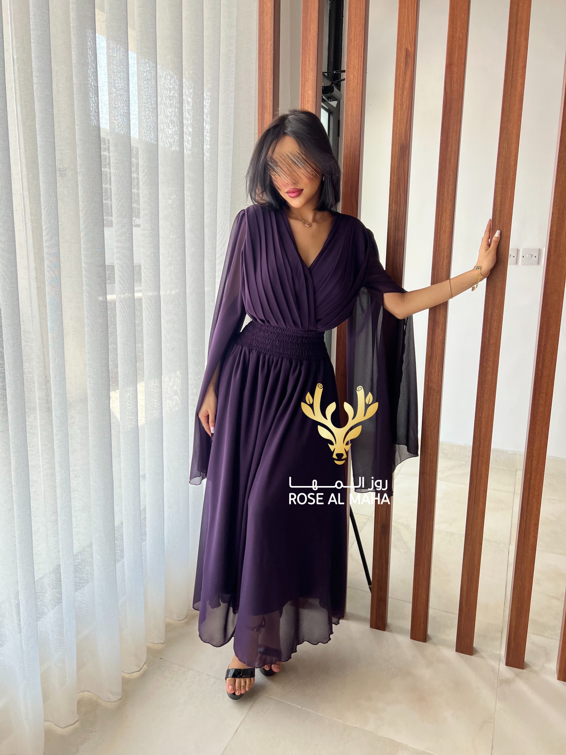 Be the first to review “روز المها – فستان بنفسجي بأكمام كيب” Cancel reply