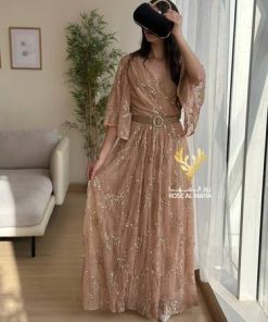 Be the first to review “روز المها – فستان بيج مطرز مع حزام” Cancel reply