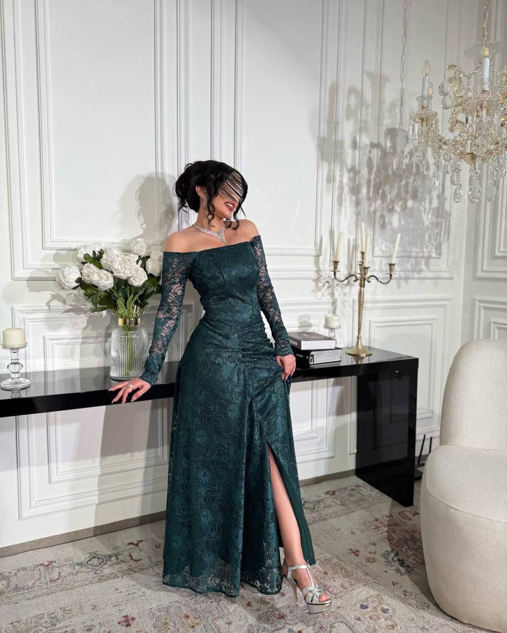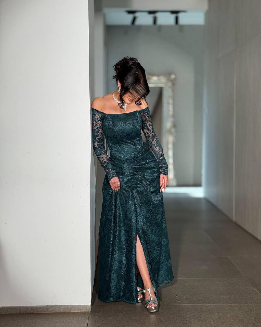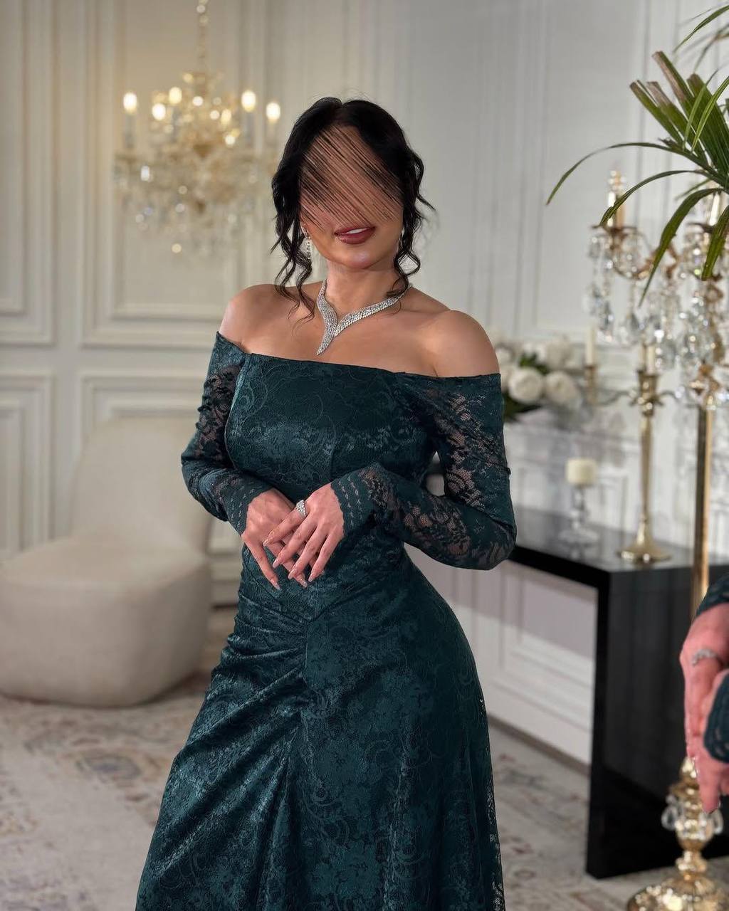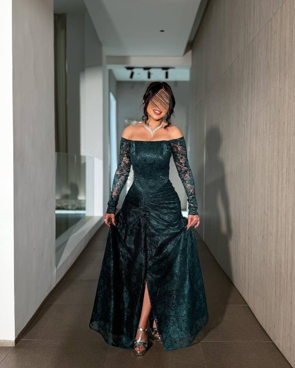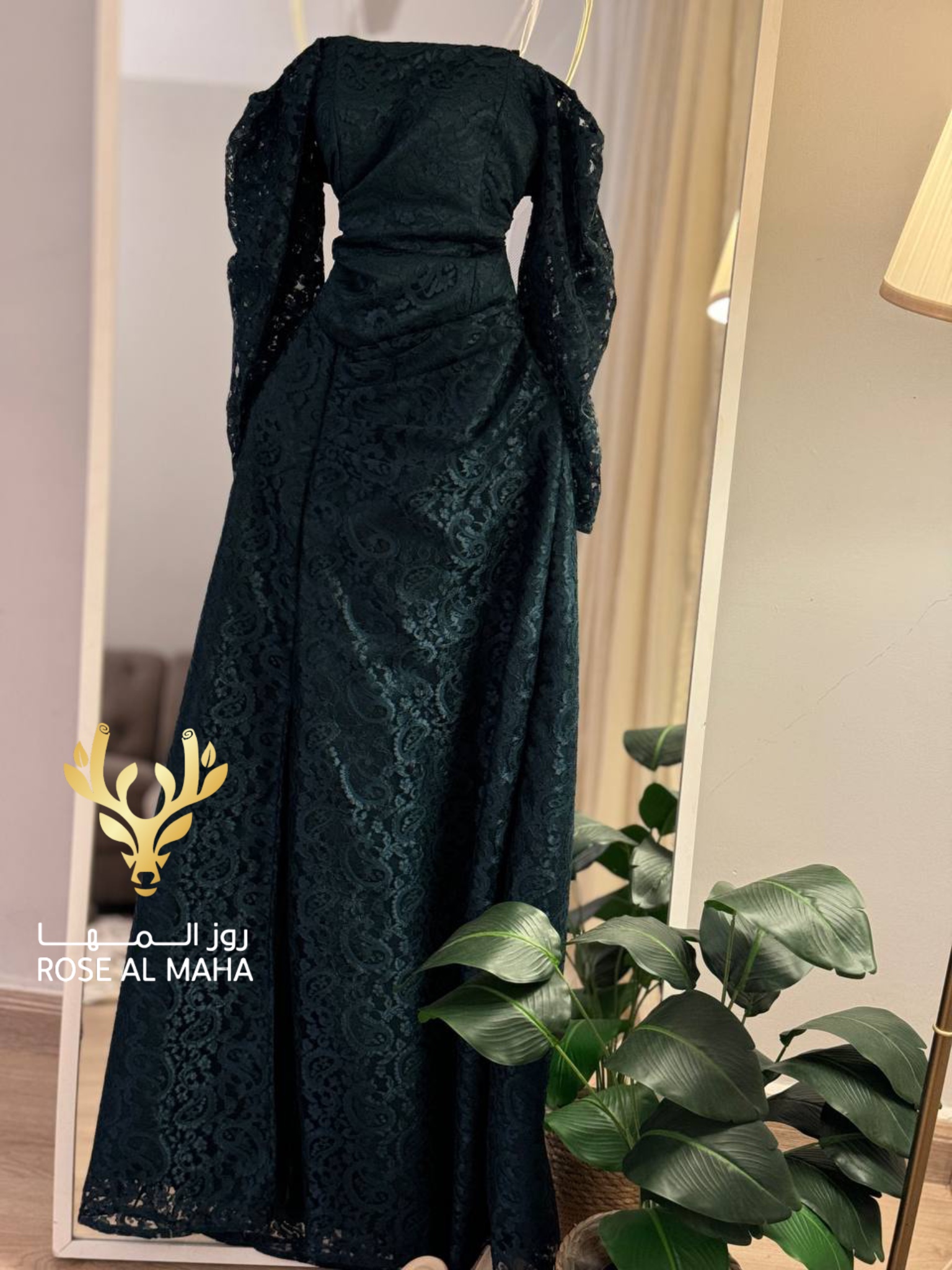 روز المها – فستان دانتيل زيتي