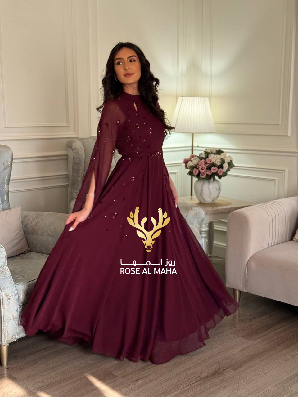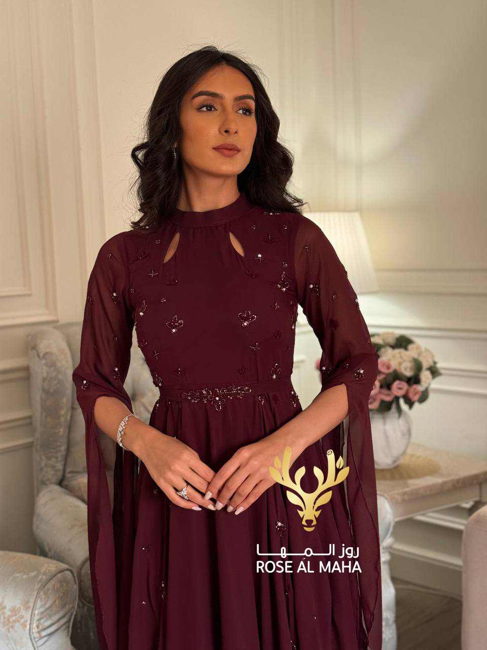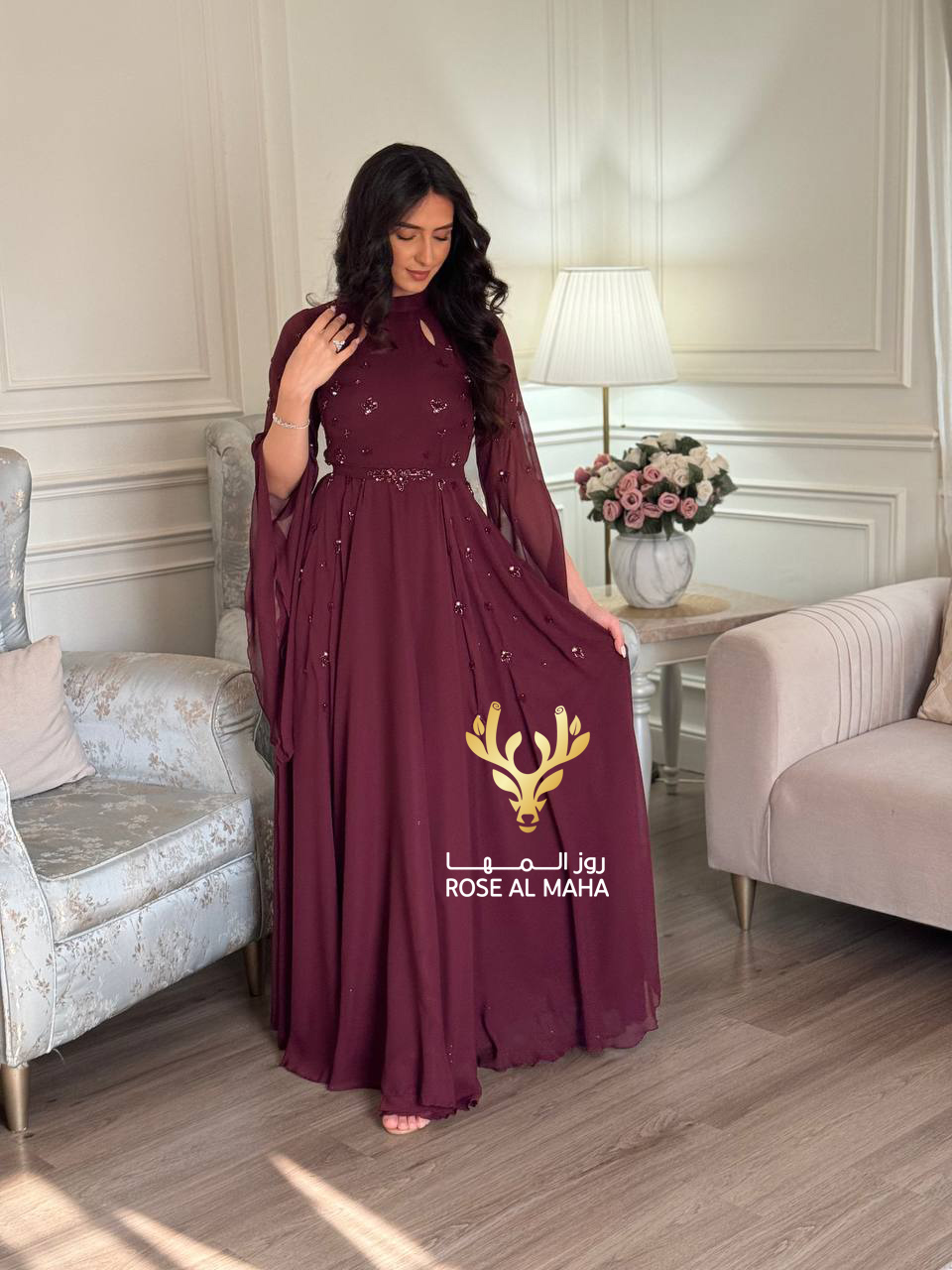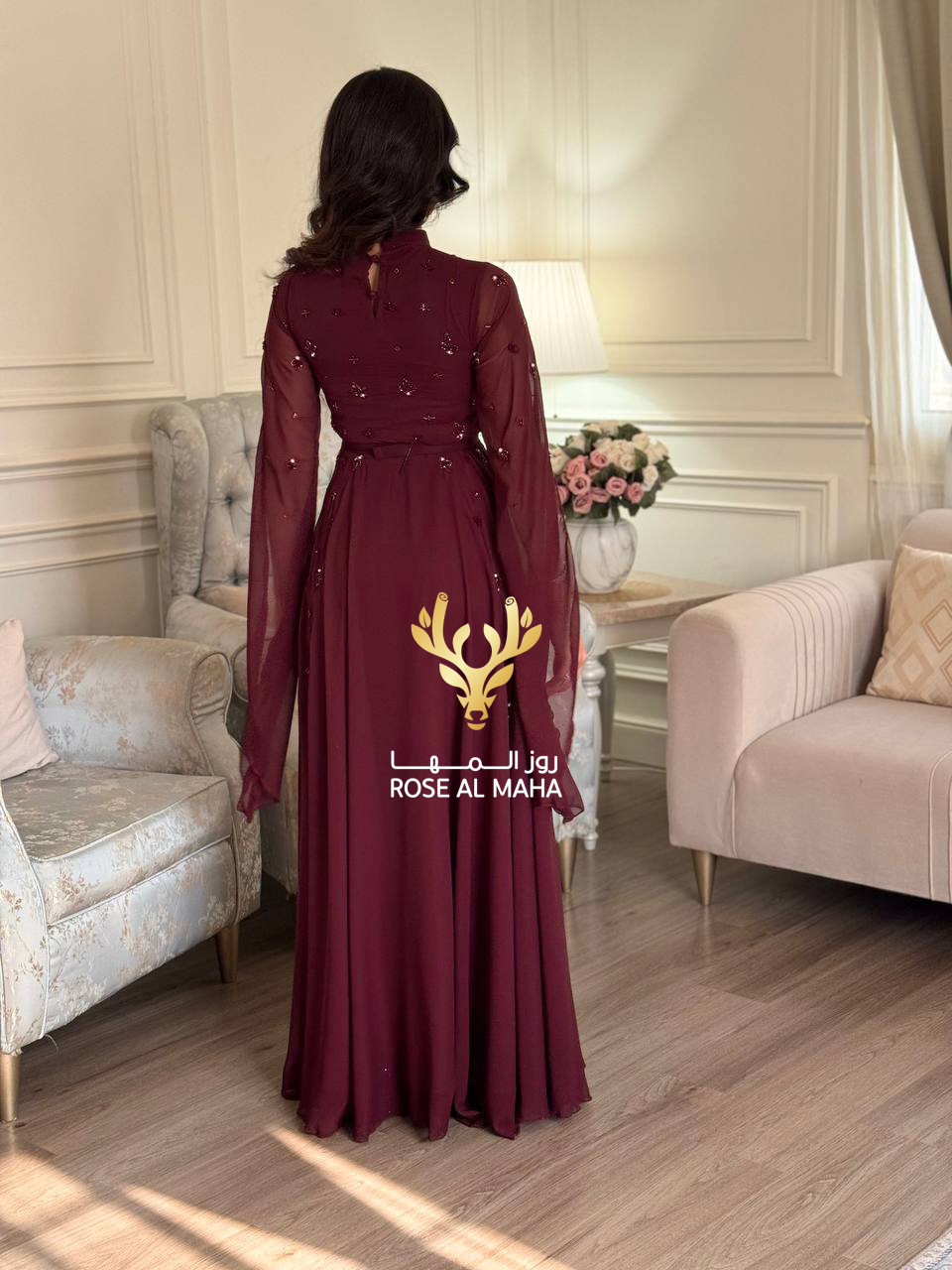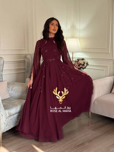 روز المها – فستان شيفون بتطريز يدوي