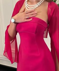 روز المها – فستان فوشي بأكمام شيفون