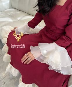 Be the first to review “روز المها – فستان ميد عودي بأطراف اورقنزا” Cancel reply