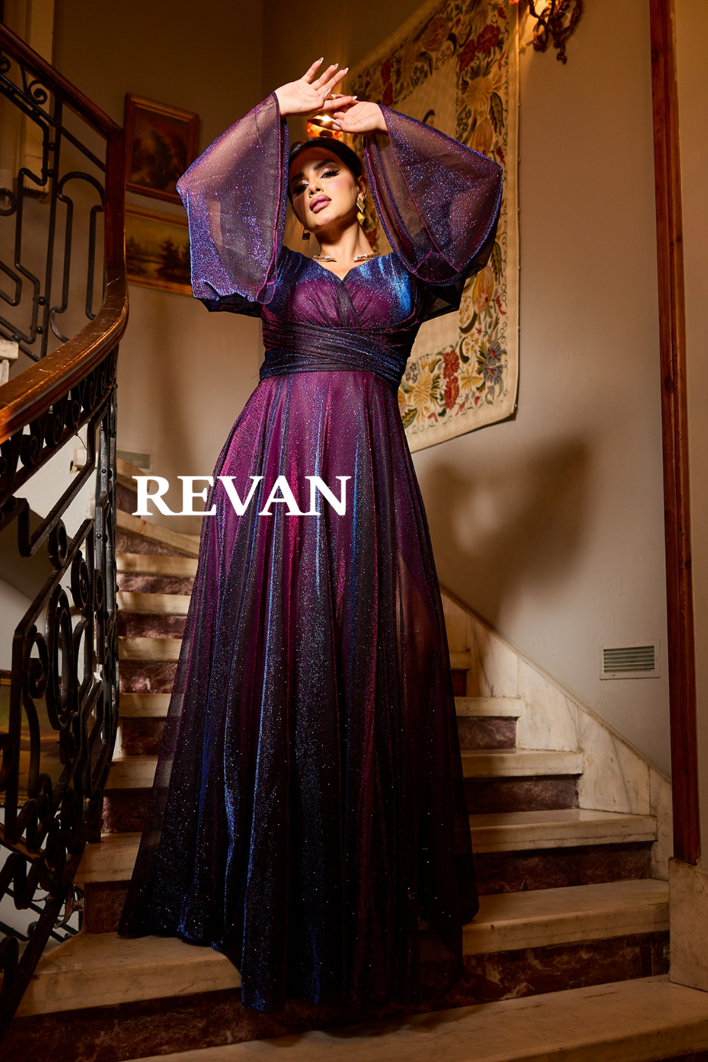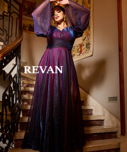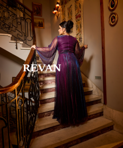 ريفان – فستان شيفون بأكمام طويلة وقصة كسرات ناعمة