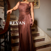 ريفان – فستان سهرة بحمالات عريضة وطيّات ملتفة