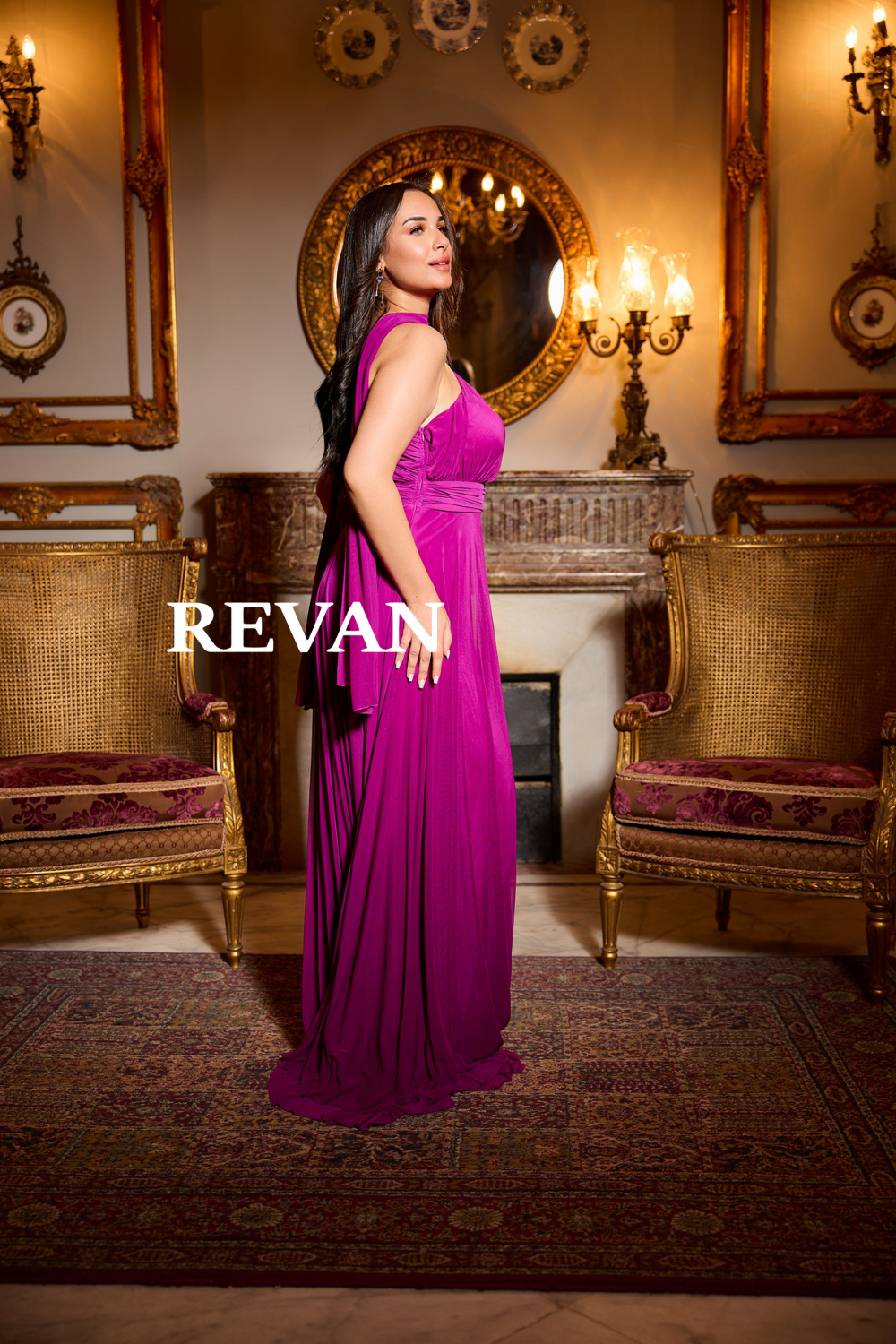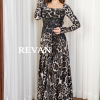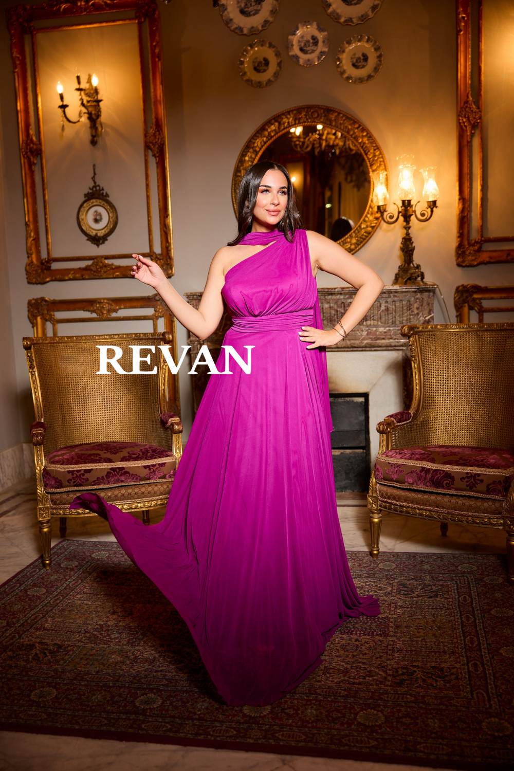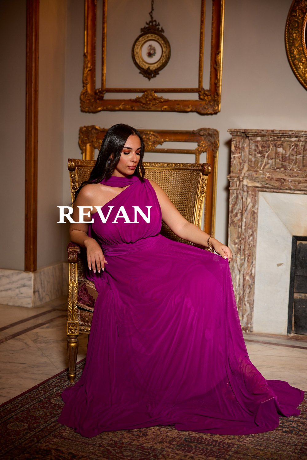ريفان – فستان سهرة بحمالات عريضة وطيّات ملتفة