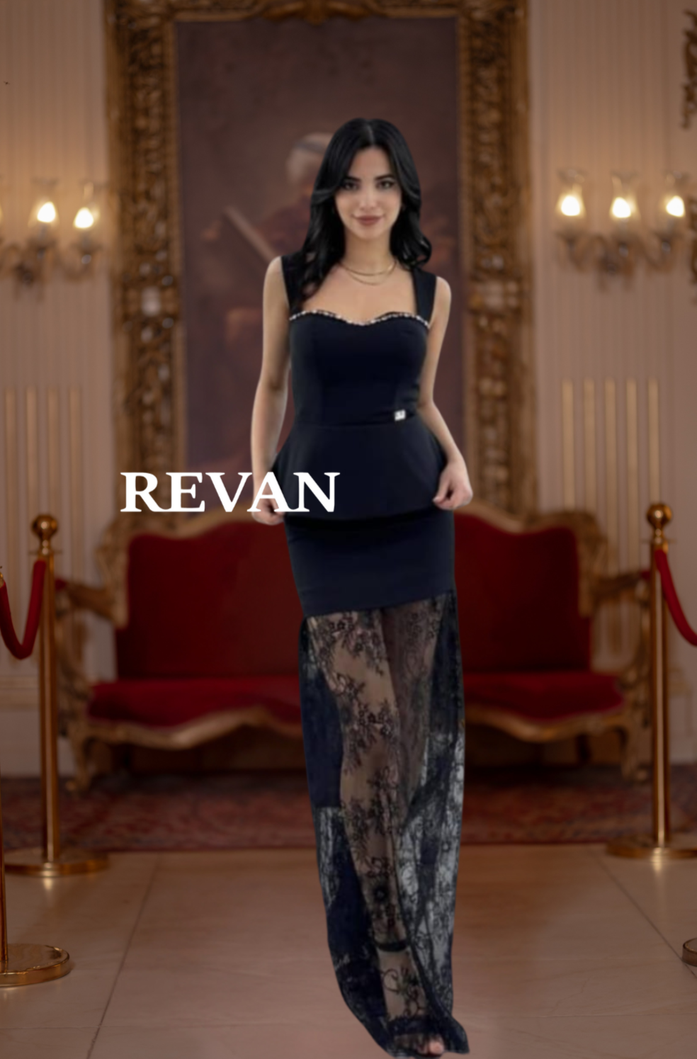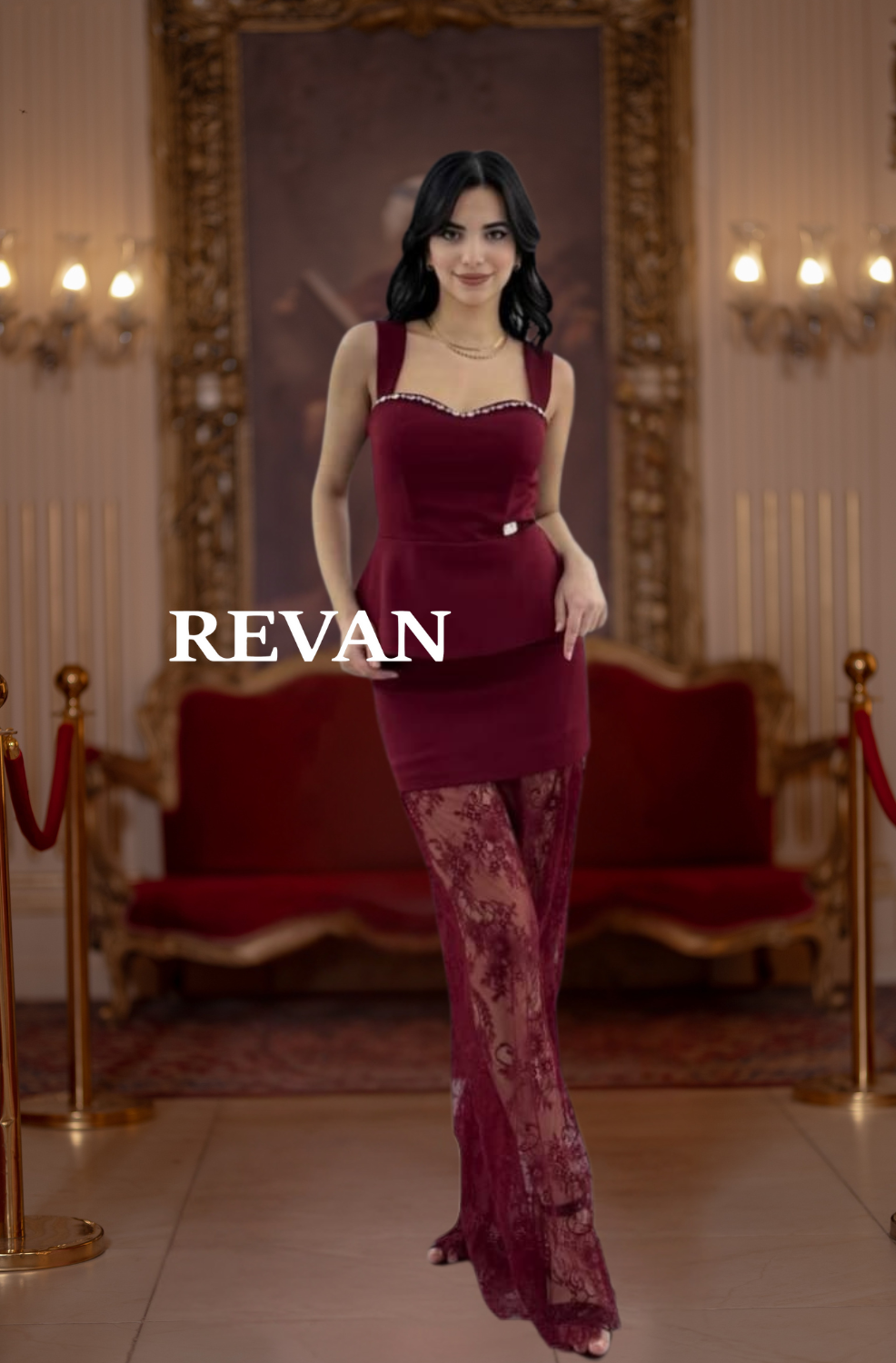 ريفان – فستان فاخر بوردو دانتيل بتصميم طبقتين من ريفان