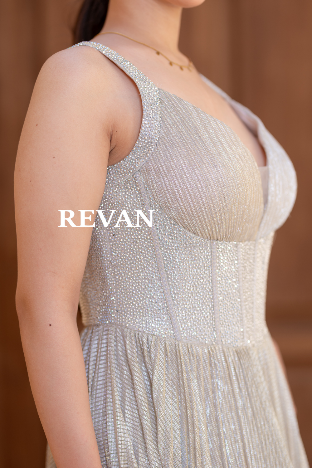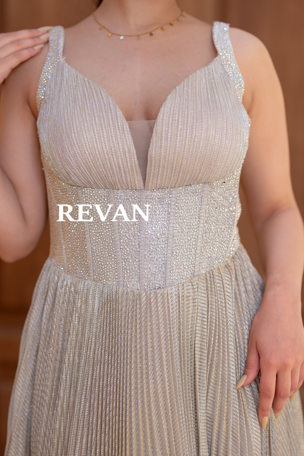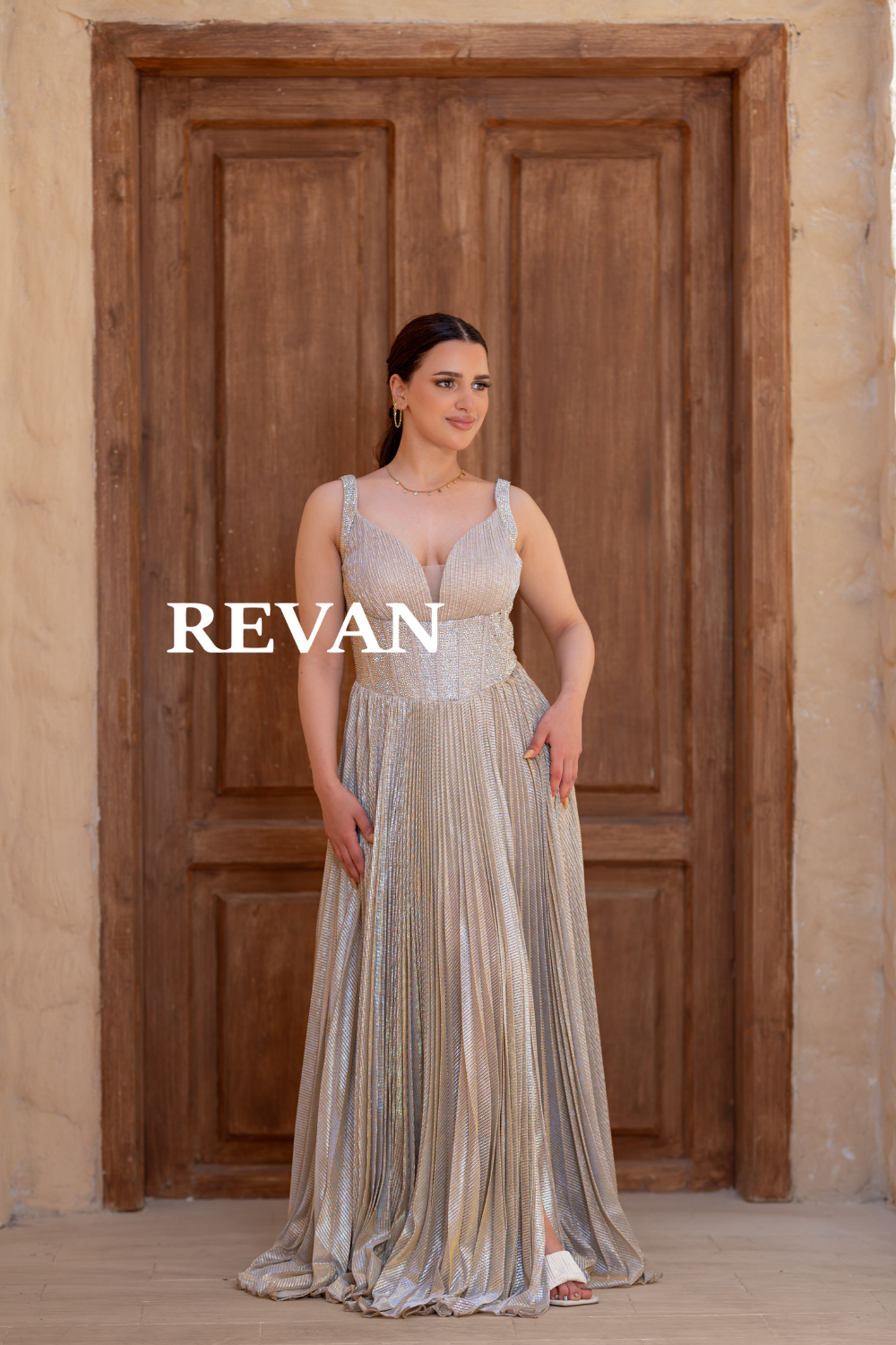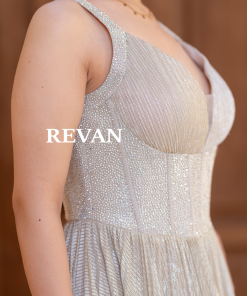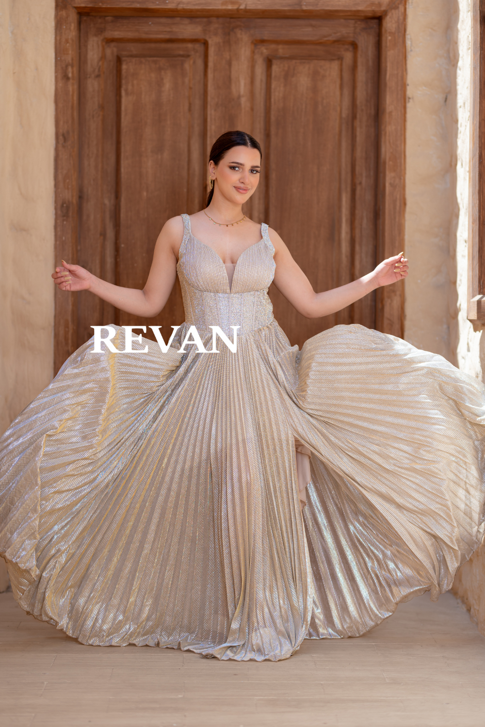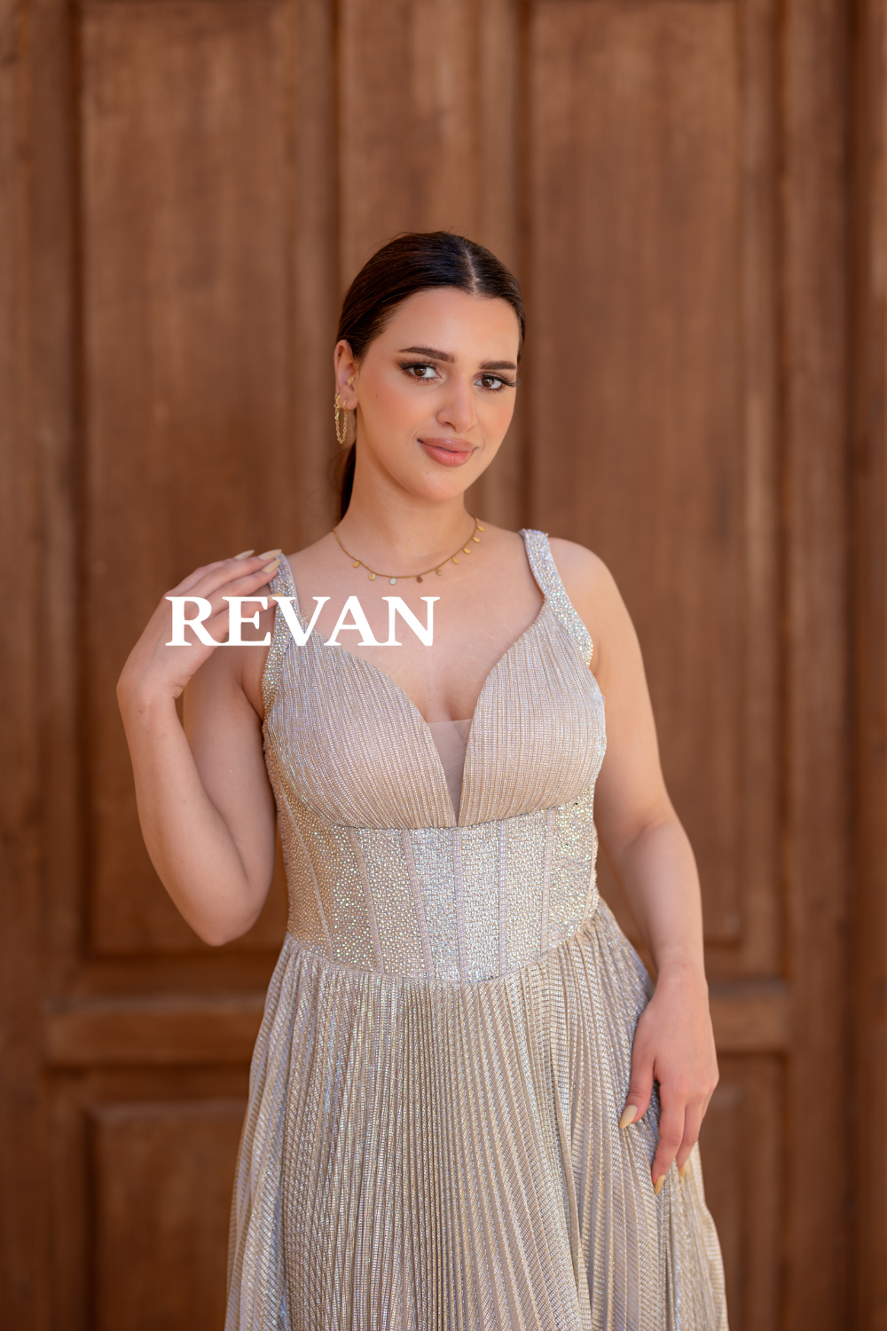 ريفان – فستان سهرة لامع بطبقة ملساء وقصة واسعة أنيقة