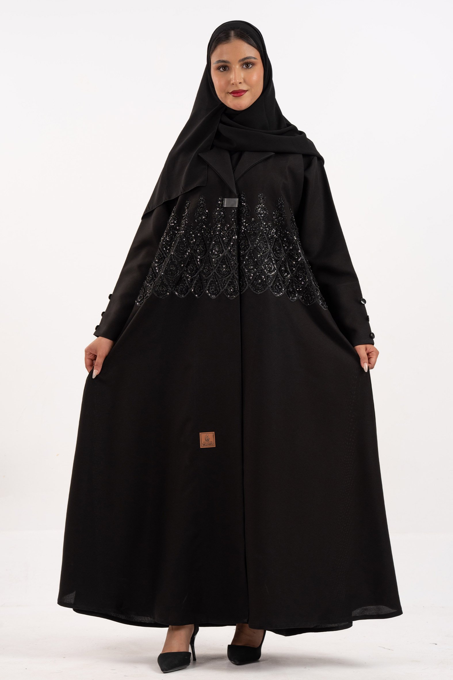 عباية أنسام منسوجة من قماش الكتان الأسود الكوري مع شك خرز امام العباية .تحفة فنية تُجسّد الرقي.اكتشفي عبايتنا الجديدة المصنوعة من أفخر أنواع الكتان الكوري الواقف، لتمنحكِ قواماً انسيابياً ومظهراً راقياً. السر يكمن في حرفية الشك اليدوي بالخرز المتلألئ، الذي يزيّن امام العباية ، ليضفي عليها بريقاً هادئاً وفخماً يعكس ذوقك الرفيع