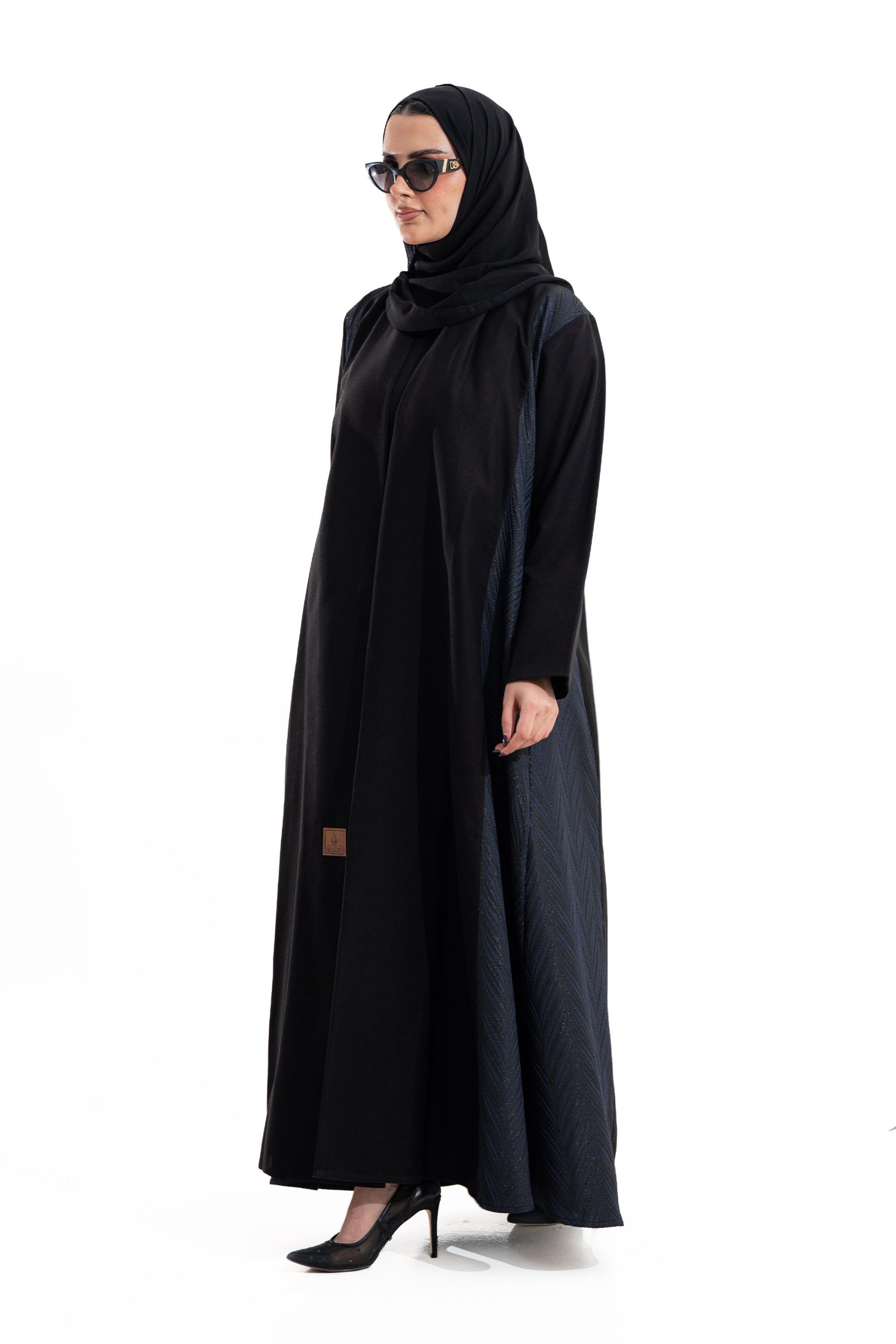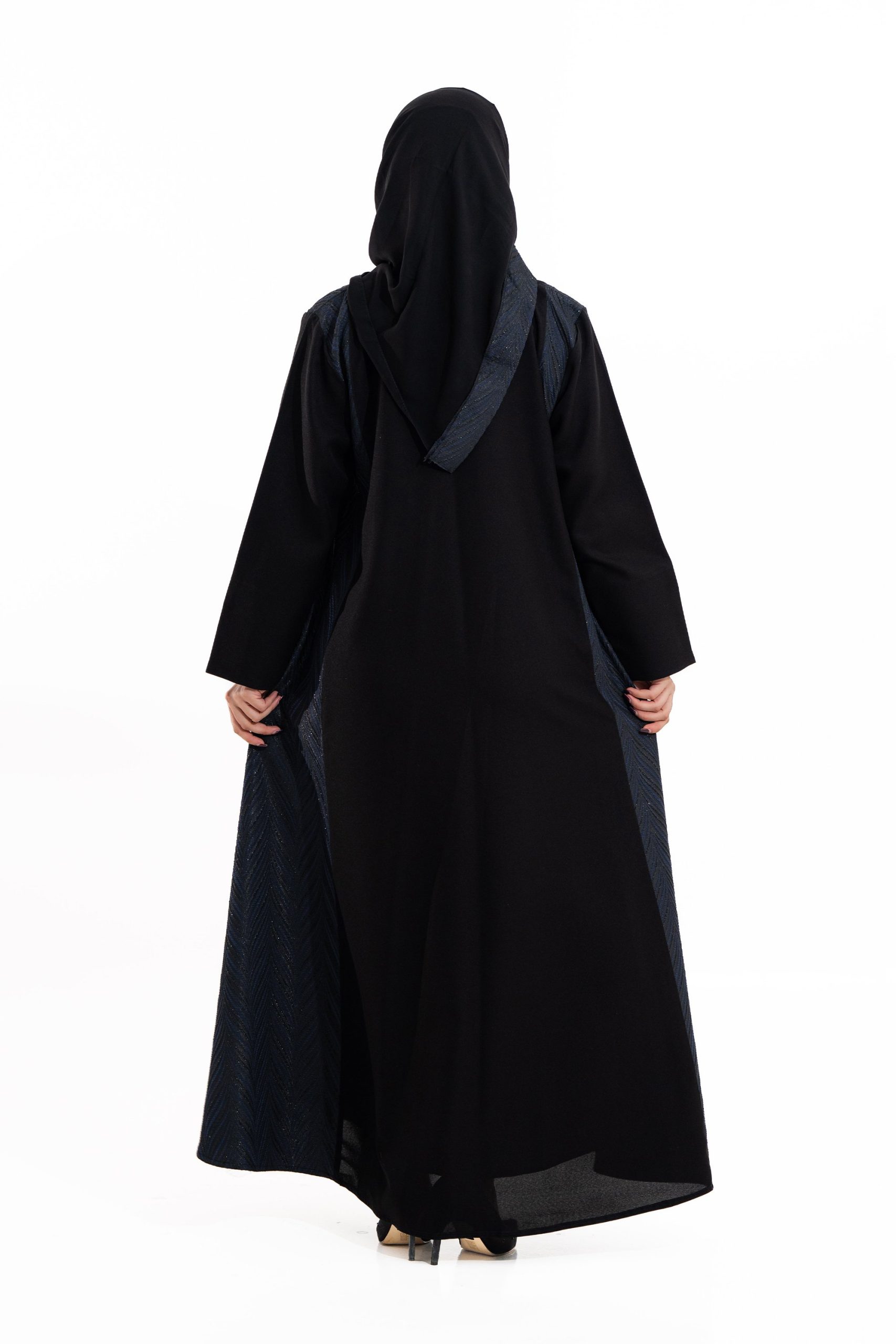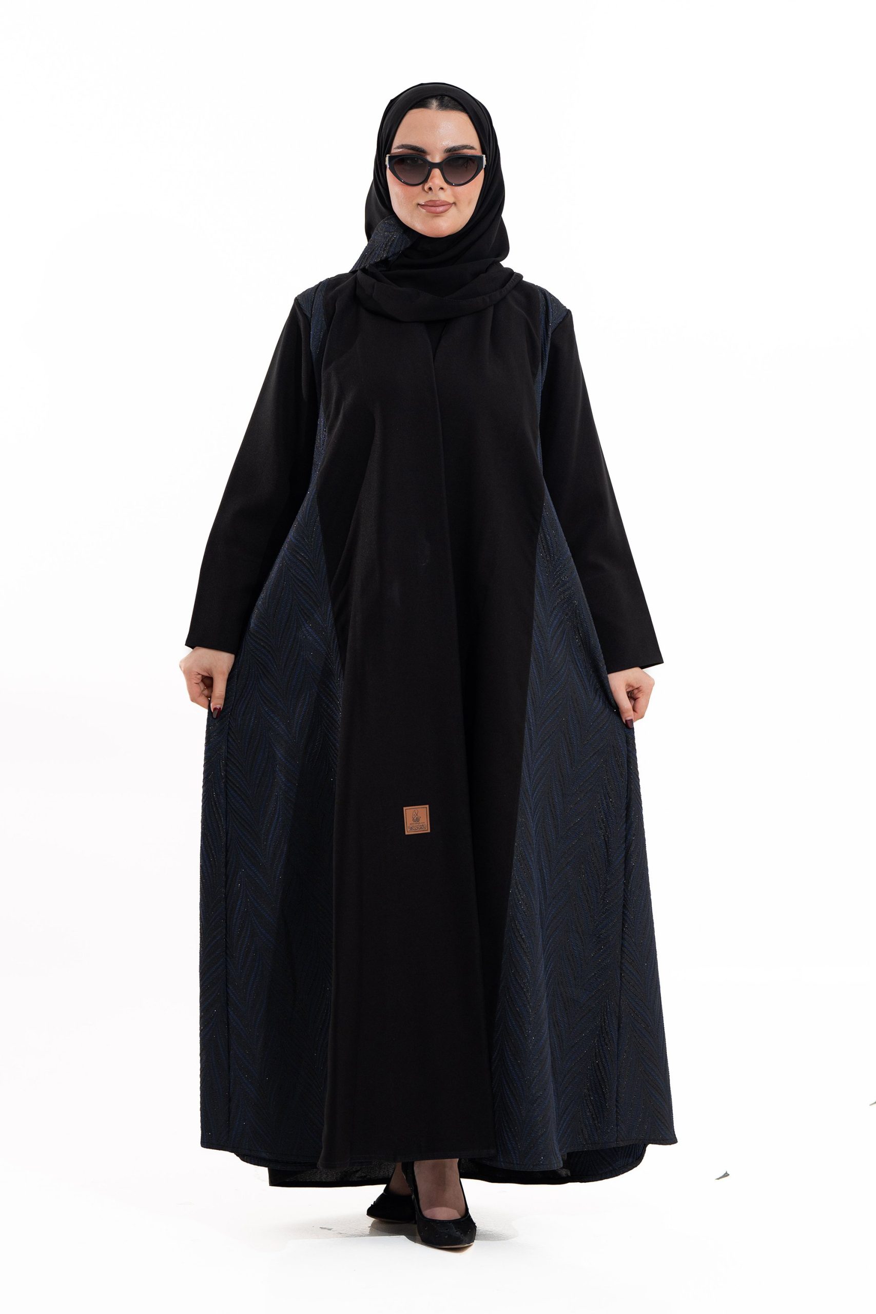 عباية أنيقة بتصميم عصري مصنوعة من قماش أسود فاخر ناعم الملمس، مزينة بتدخيلات قماش الجاكر الكحلي بنقوش هندسية راقية . تصميمها الانسيابي يمنحك راحة في الحركة وأناقة متوازنة، لتكون خيارًا مثاليًا للاستخدام اليومي والطلعات الرسمية بأسلوب راقٍ وعصري. تأتي مع تنسيق أنيق يسهل اعتماده لمختلف الإطلالات.