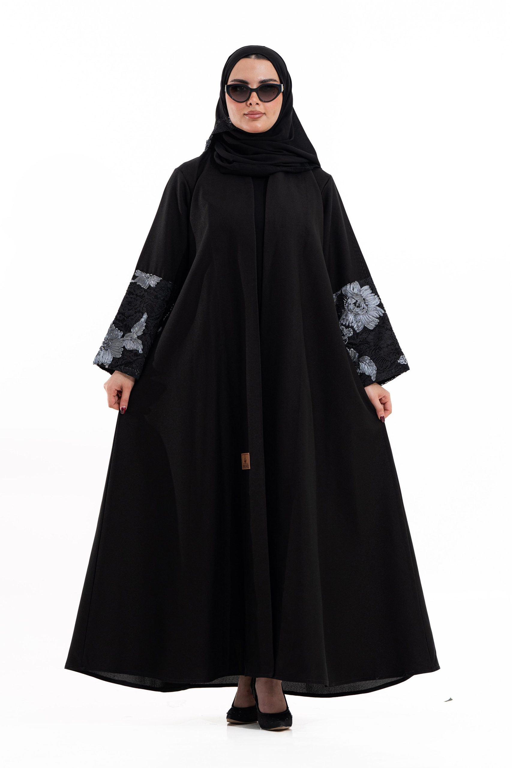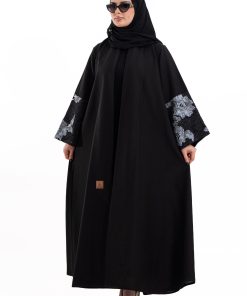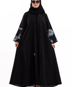 زاهية – عباية بياقة واسعة مع تطريز كحلي ع الاكمام