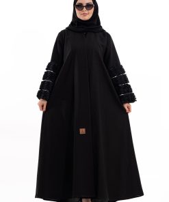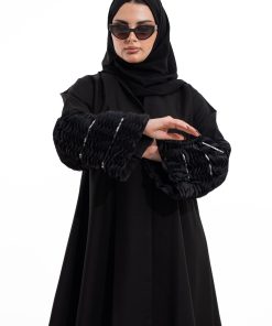 عباية أنيقة بتصميم عصري مصنوعة من قماش أسود فاخر ناعم الملمس، مزينة بتدخيلات قماش مطرز بنقوش هندسية راقية ومطعمة بتطريز لامع يضفي فخامة هادئة على الأكمام وواجهة العباية. تصميمها الانسيابي يمنحك راحة في الحركة وأناقة متوازنة، لتكون خيارًا مثاليًا للاستخدام اليومي والطلعات الرسمية بأسلوب راقٍ وعصري. تأتي مع تنسيق أنيق يسهل اعتماده لمختلف الإطلالات.